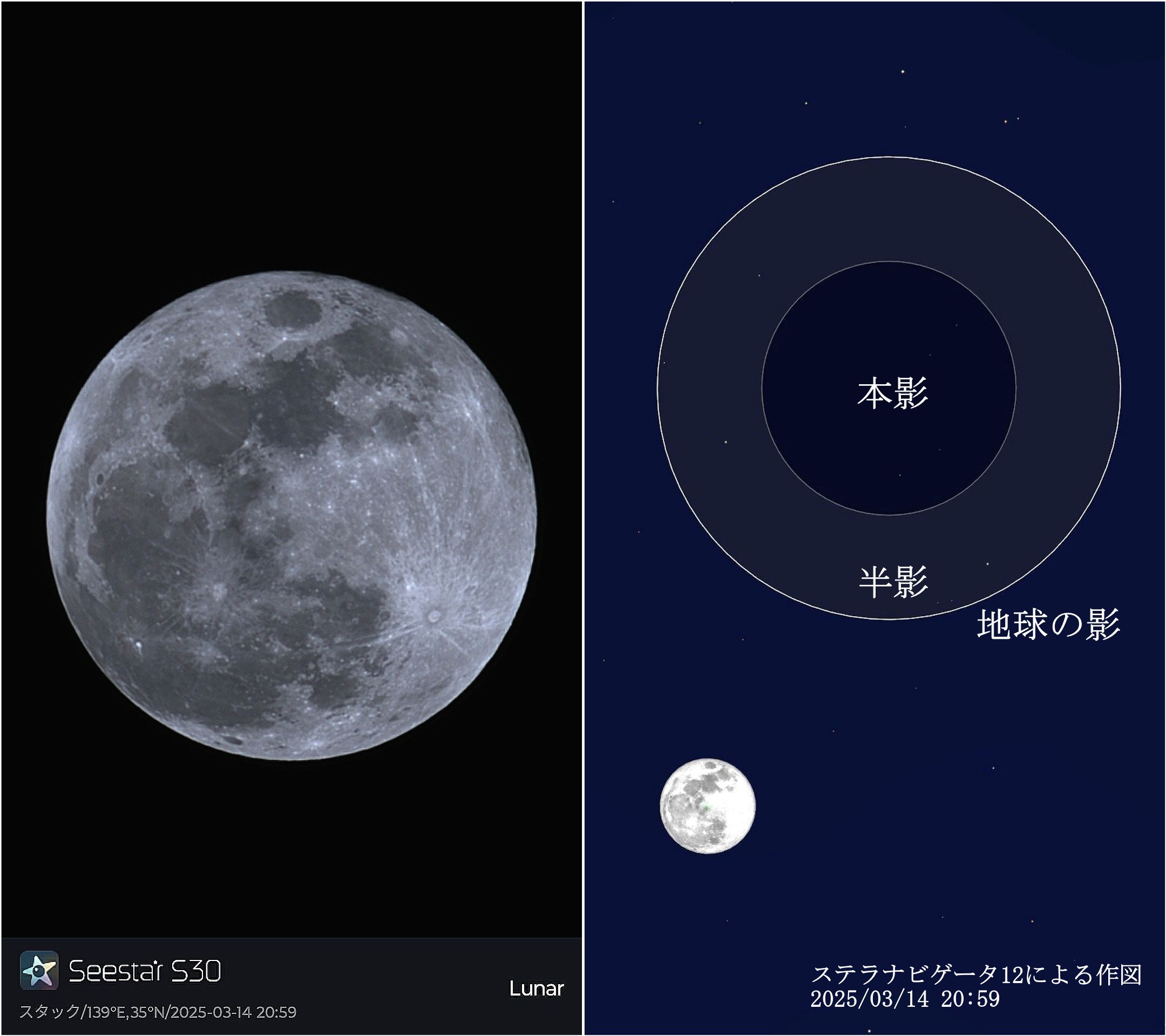 画像3 ほぼ満月(月齢14.5) 2025/03/14 Seestar S30による