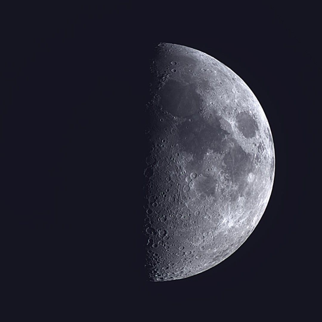 当日も夕方になって雲ばかりと諦めていましたが、19:00頃になって真上の空が開け、高度約80°の上弦をS50で撮影。上弦の時刻は11:15でした。 画像1に月齢7.0を示します。数時間後には月面Xが現れ始めたのでしょうが、その前に月は雲の中へ。記録画像のみ。 画像1 月齢7.0 上弦 2025/04/05 19:04 Seestar S50 RAWビデオからASIVideoStackでスタック