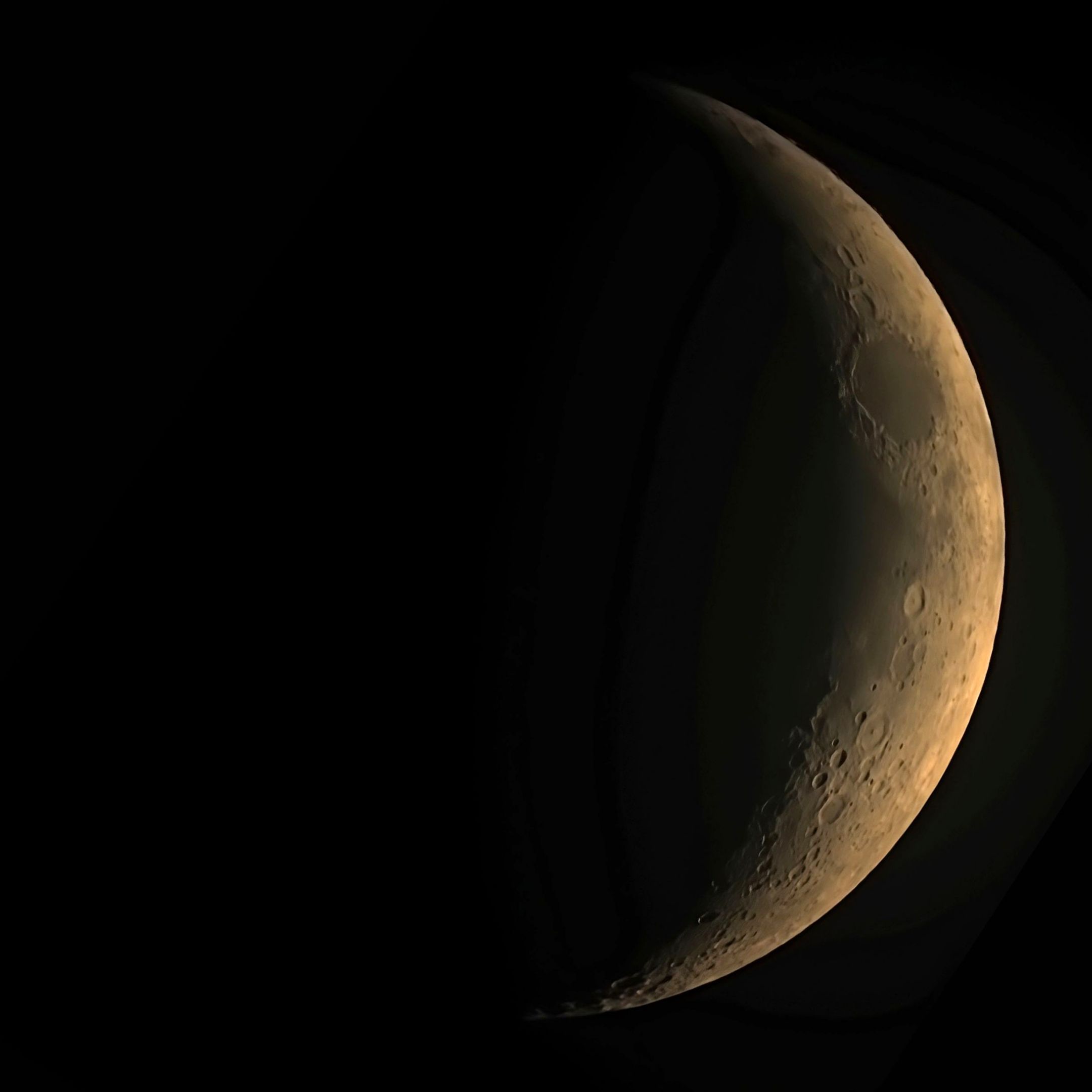 No.1464では同日日中の月齢3.3をSeestar S50で撮影。その画像では薄く危機の海が見えていたので夜になってそれを見たいとCOOLPIX P1000を手持ちで撮りました。高度は25°と低く、月の周りがぼーっとしていましたがそれが少し消えかかった時に4K動画で撮影。PIPPでフレームを取出し、AutoStakkert!3でスタックした後、画像調整でそのぼーっとした様子を少し和らげました。