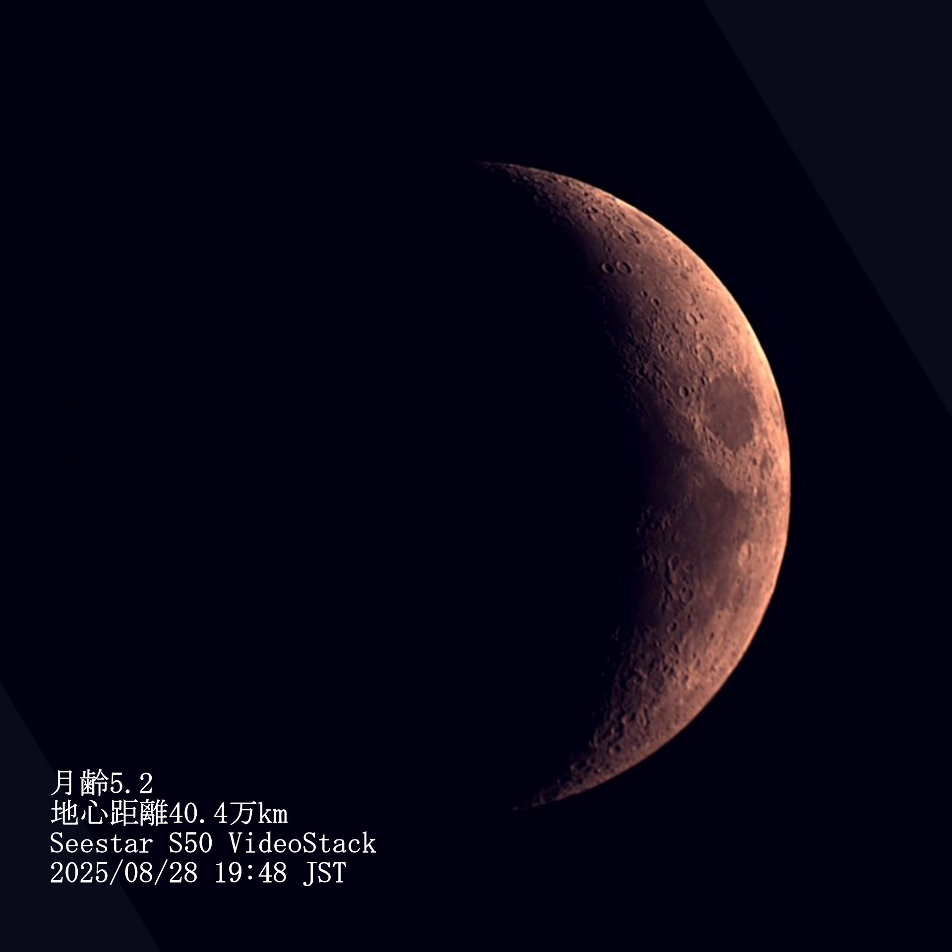 画像1 月齢5.2 2025/08/28 19:48 Seestar S50 VideoStack 縦軸を南北に回転補正