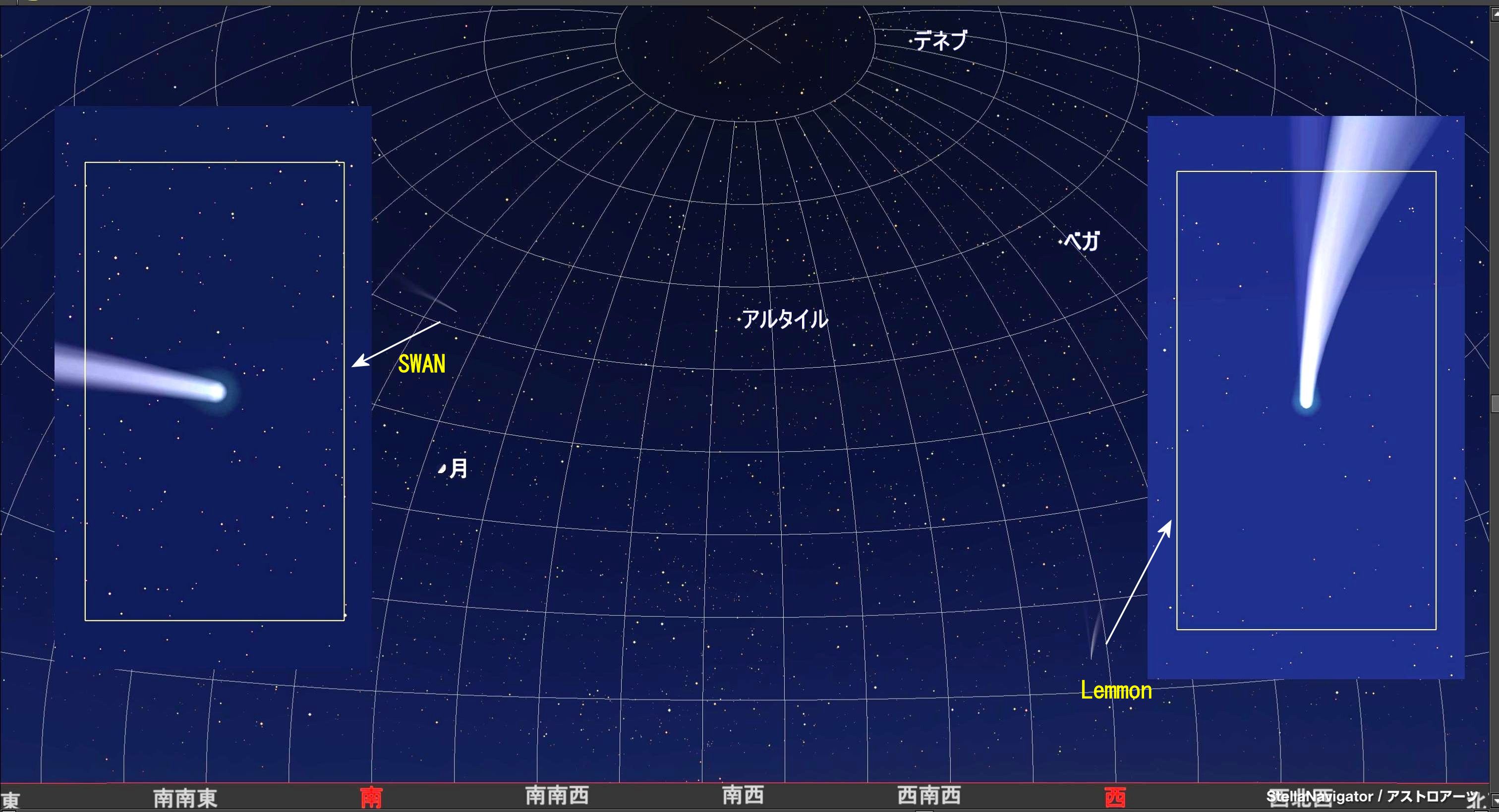 画像1に両彗星を示します。右がレモン彗星、左がスワン彗星。