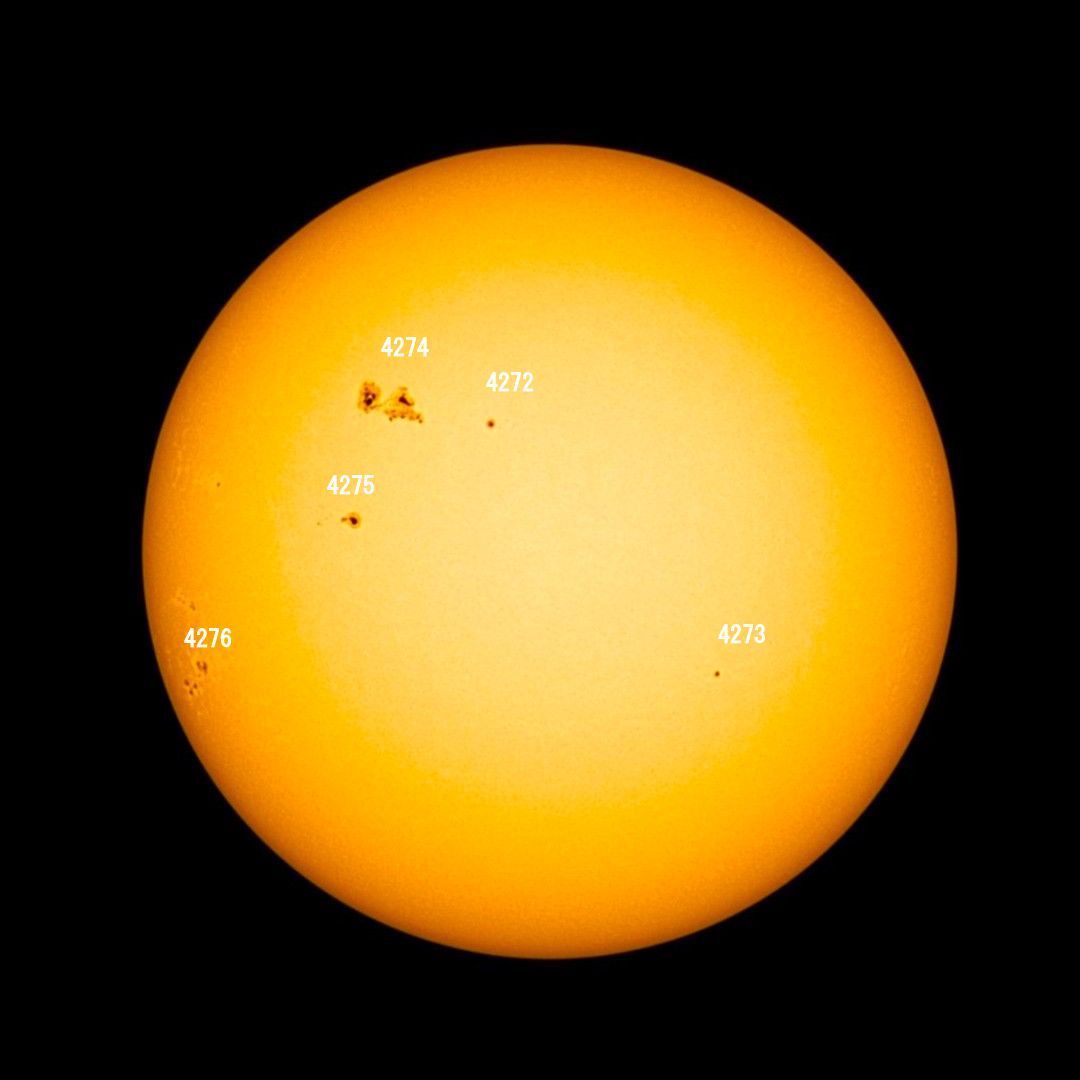 昼の太陽をSeestarS50 + ND-100000で撮影。画像2に示します。ライブVideoStack。縦軸は南北 回転補正。太陽白色光画像ではわかりませんが太陽は活発なようです。Seestar S50の×2倍にして撮影した画像も示しておきます。画像3に示します。