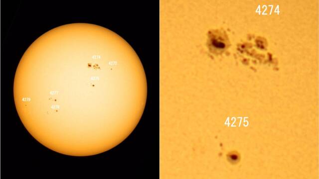 18:22~18:52までの間に100枚以上の画像が得られました。ブレのひどい画像を除いて95枚をSirilでスタック、レモン彗星と同様に彗星位置基準でスタックしています。結果を画像2に示します。左右の画像は画像1と同様にスタックのまま、および明度等調整した画像です。
