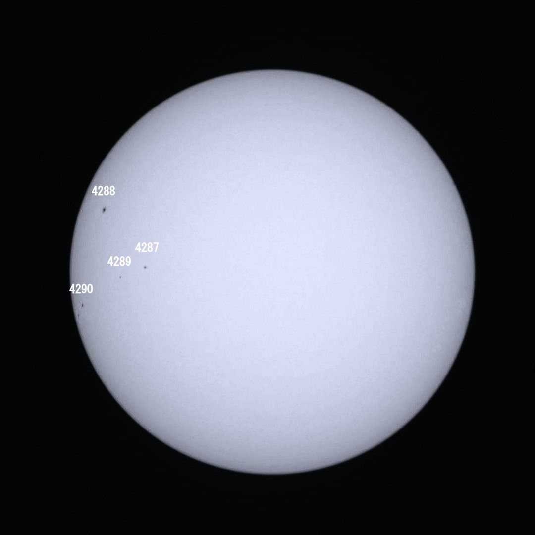 昨日のお昼前に撮った太陽を画像1に示します。黒点の無い日がないかとここ数日間、素人目で見てきましたけれど、やっぱりまっさらなシミの無い太陽は現れないですね、黒点の無い日が。