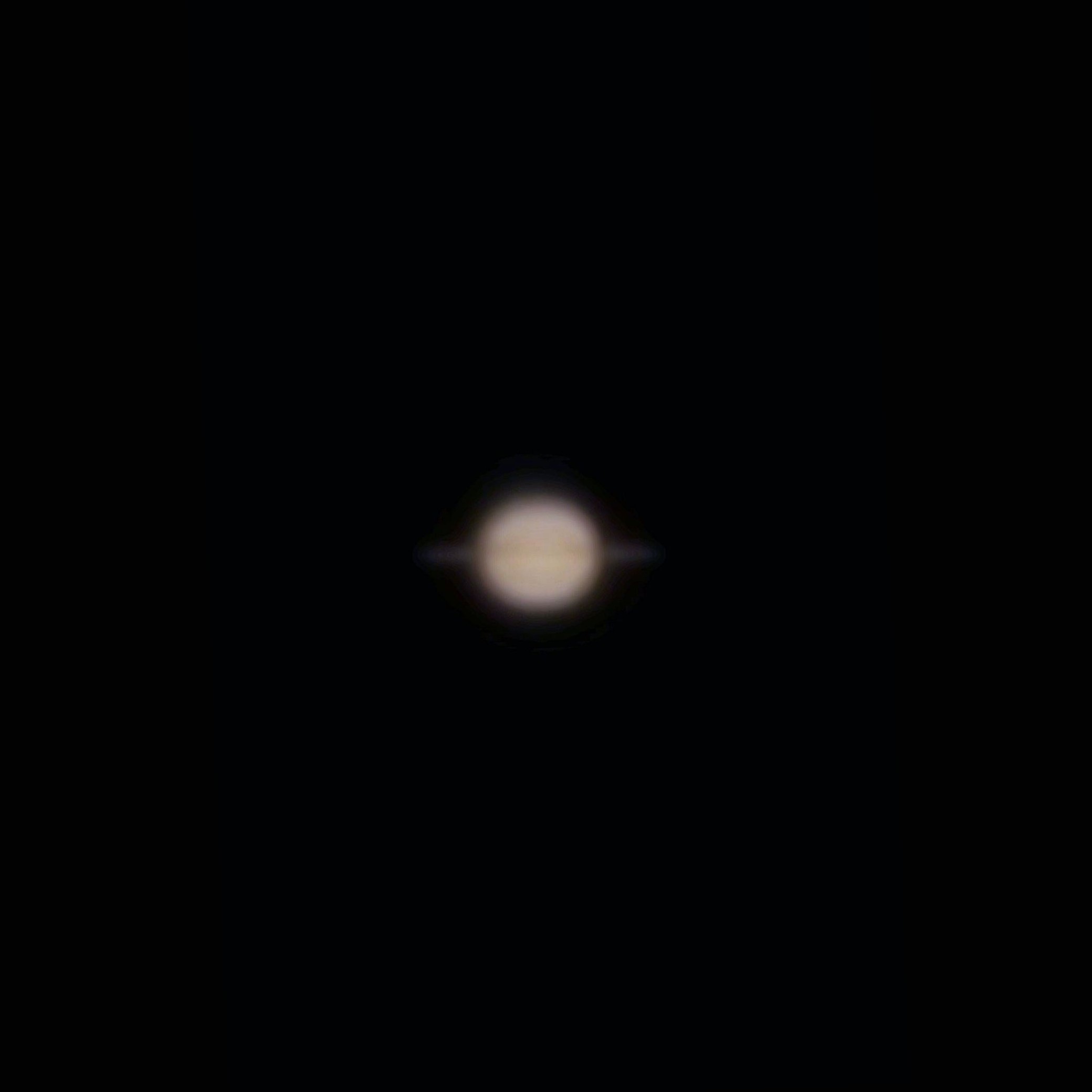 P1000の解像度に対応して、土星本体にかかる環の影および環のほぼ水平に近い状態にある南面の光りはほとんどボケてクッキリしませんがそれと思わせる画像を示しています。