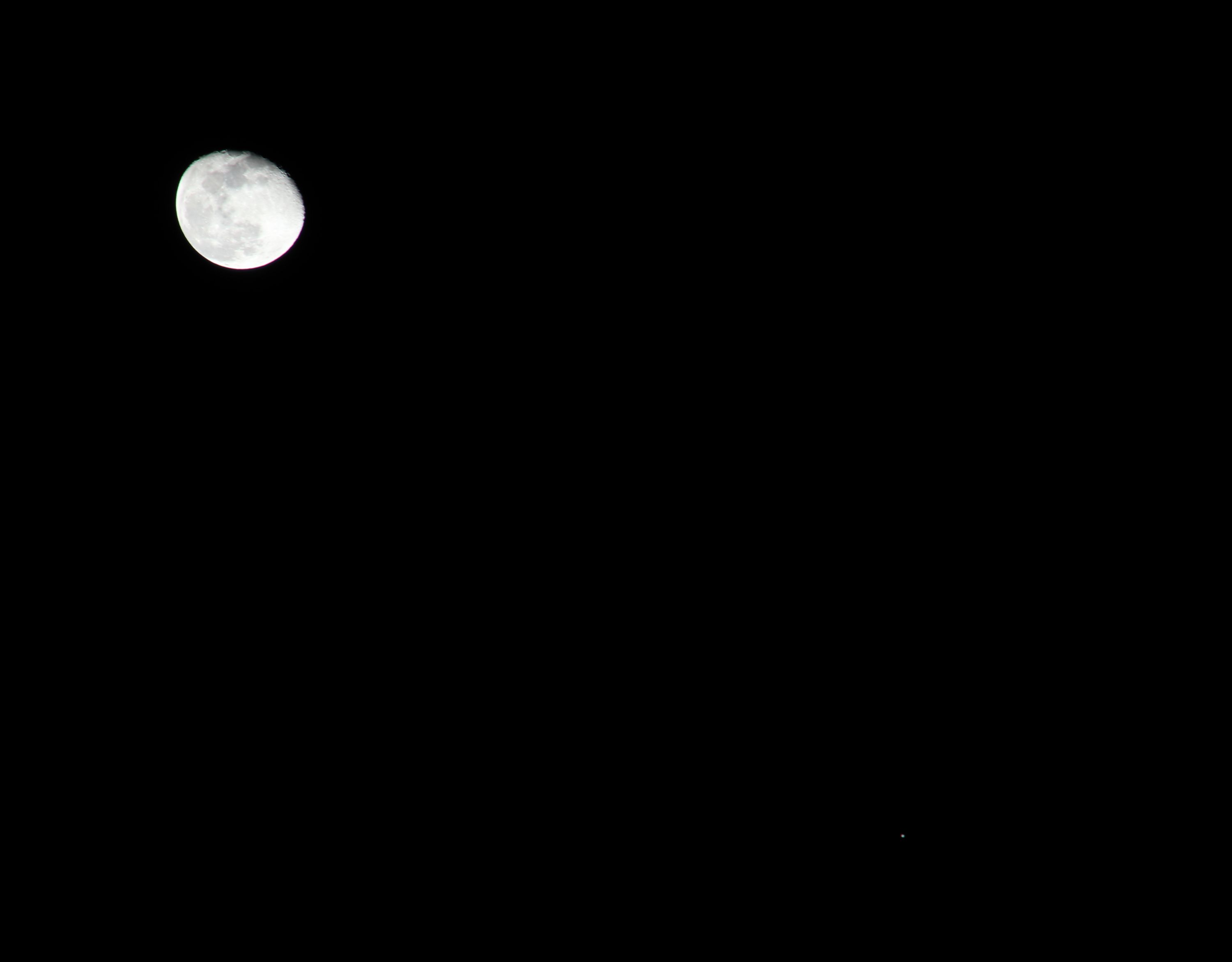 画像1にその結果を示します。月の模様と木星の光が同時に見える様に撮影した例です。眺めた印象ではもっと木星は明るかったように感じています。以前No.1235でも撮ったことがあるのですが似たような画像でした。