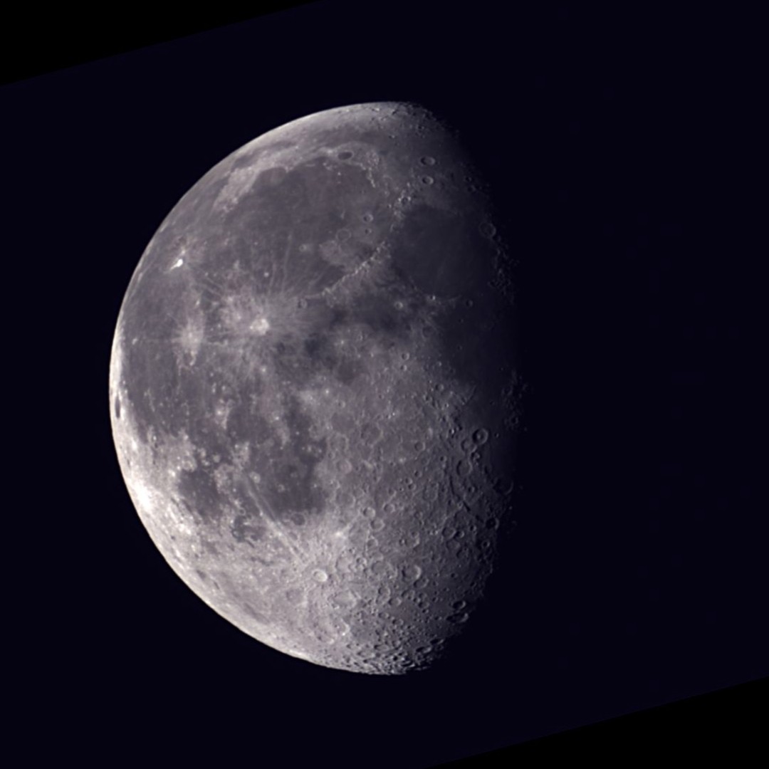 シーイングは良くない空でしたが、Seestar S50の写り具合を見てビデオスタックに。画像1に示します。 メモ:地心秤動で経度が大きく+7.8°でしたので東端(左)に注目。解像度がそれなりですが、グリマルディがぎりぎり端に、リッチオリはこの画像ではわからないほど回り込んでしまった。ビルギウスがこんなに白く写るなんて気が付かず。緯度秤動は-2.5°でした。 Lunar 画像1 月齢19.3 2025/12/09 23:33 Seestar S50