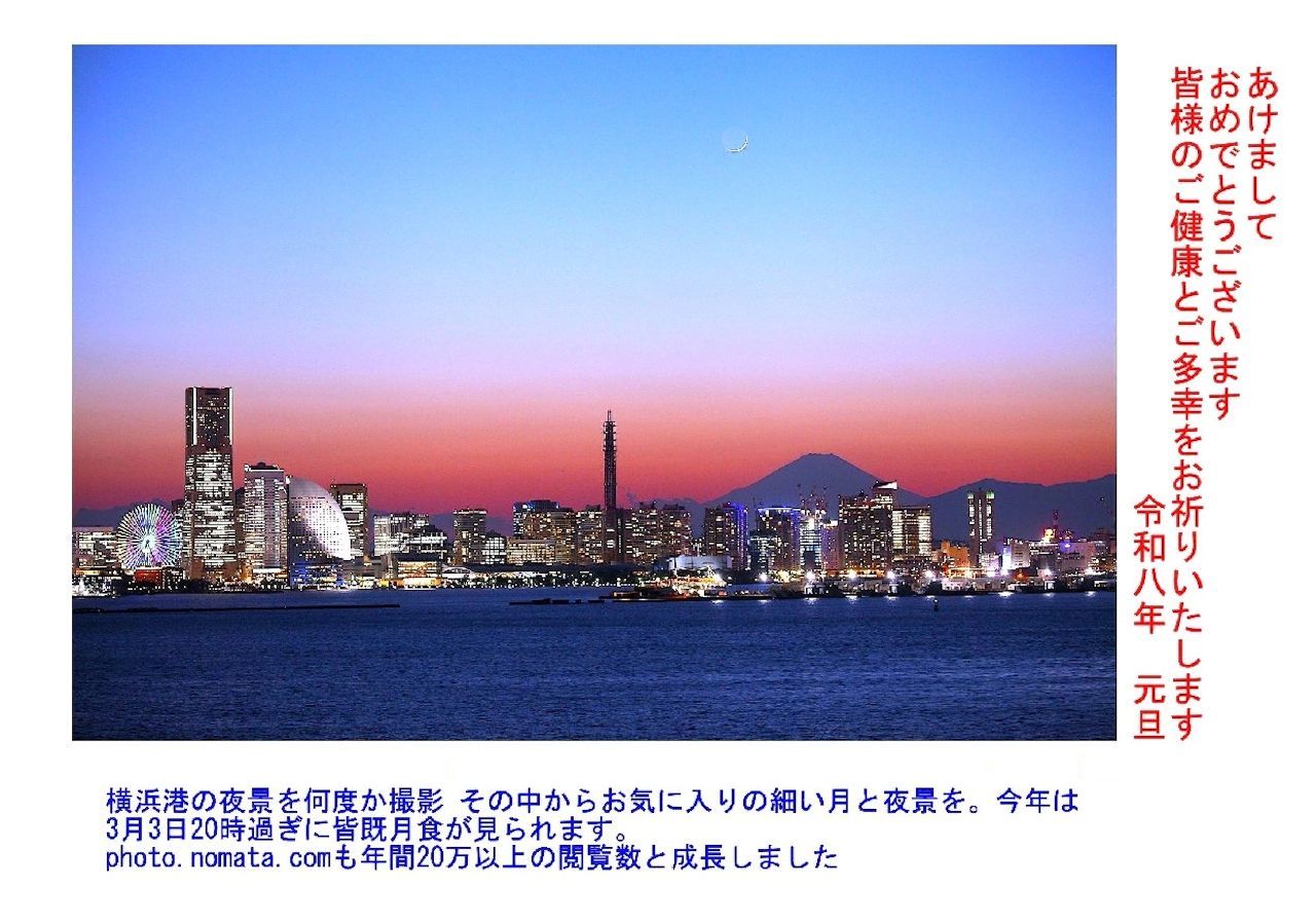 横浜港の夜景です。ダイヤモンド富士の時に出かけますが、暗くなる直前も狙います。印刷のため明るめに。