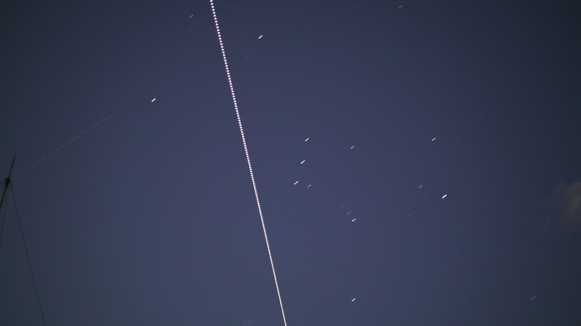 これに並行して久しぶりにEOS-M6で魚眼レンズを持ち出し光跡インターバル撮影をと思いましたが、遠ざかる方向で高度が低くなりますがオリオン座を通過することがわかりました。そこでF1.4の35mmレンズに取り換え、動画で撮影することにしました。高度は約35°、距離は約700kmです。