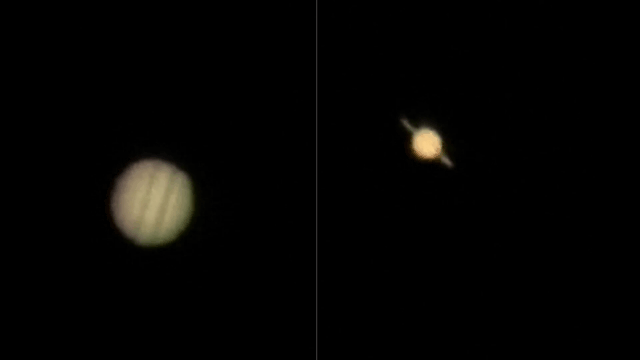 ISS通過の後、東の空に昇ってきていた月齢12.6とすぐ右上の木星が目立ちましたのでそのままEOS-M6 F1.4 35mm単焦点レンズで撮影。画像1にそれをスライダー表示で示します。月のすぐ左にはふたご座のα、β星のカストルおよびポルックスの顔が並んで見えています。キレイなので少し眺めていました。