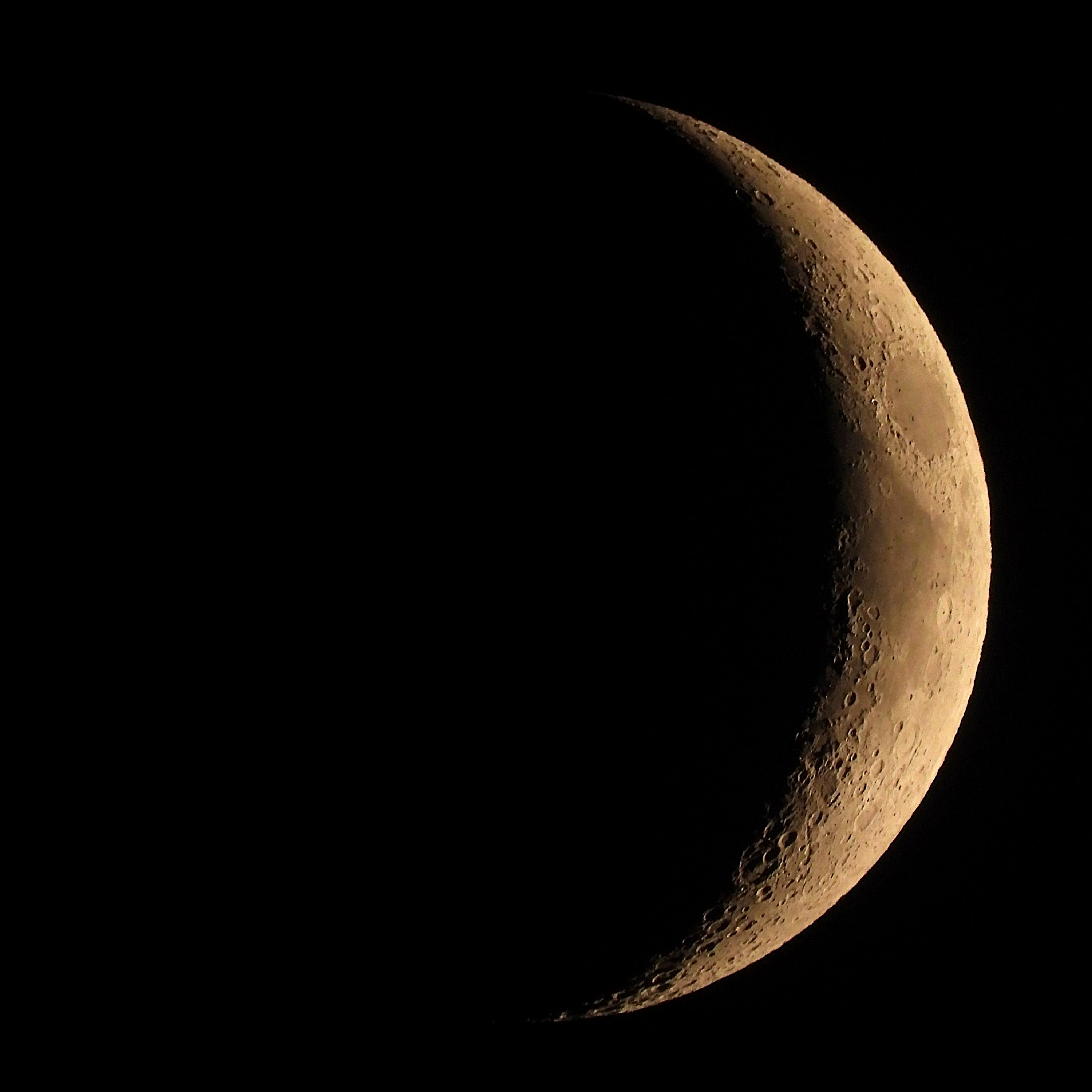 CSS通過前に数分間余裕があったので手持ちで、ISO感度を少し上げて撮影。細い月は見ていて飽きない、きれい、美しい。画像は縦軸を月の南北にほぼ合わせて回転しています、原画像では水平月を思い出してしまいました。CSS通過後にはこの月も雲に囲まれてしまいました、記録のみで十分満足。 画像1に示します。 画像1 月齢3.9 2026/02/21 18:52 COOLPIX P1000 ISO-400 359mm(2,000mm相当) 1/100s ワンショット