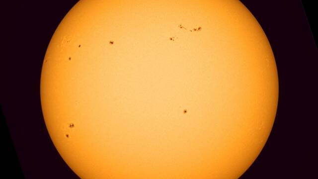 黒点が見えているとのことで撮ってみました。No.197の3か月ぶり。少し薄い雲もあったりして。2017/07/10 8:33 COOLPIX P900 ISO-100 F/6.5 1/800秒 357mm(2000mm相当) ND-100000太陽フィルター使用。黒点を4X4に拡大。NASAのデータもリンクしておきます。