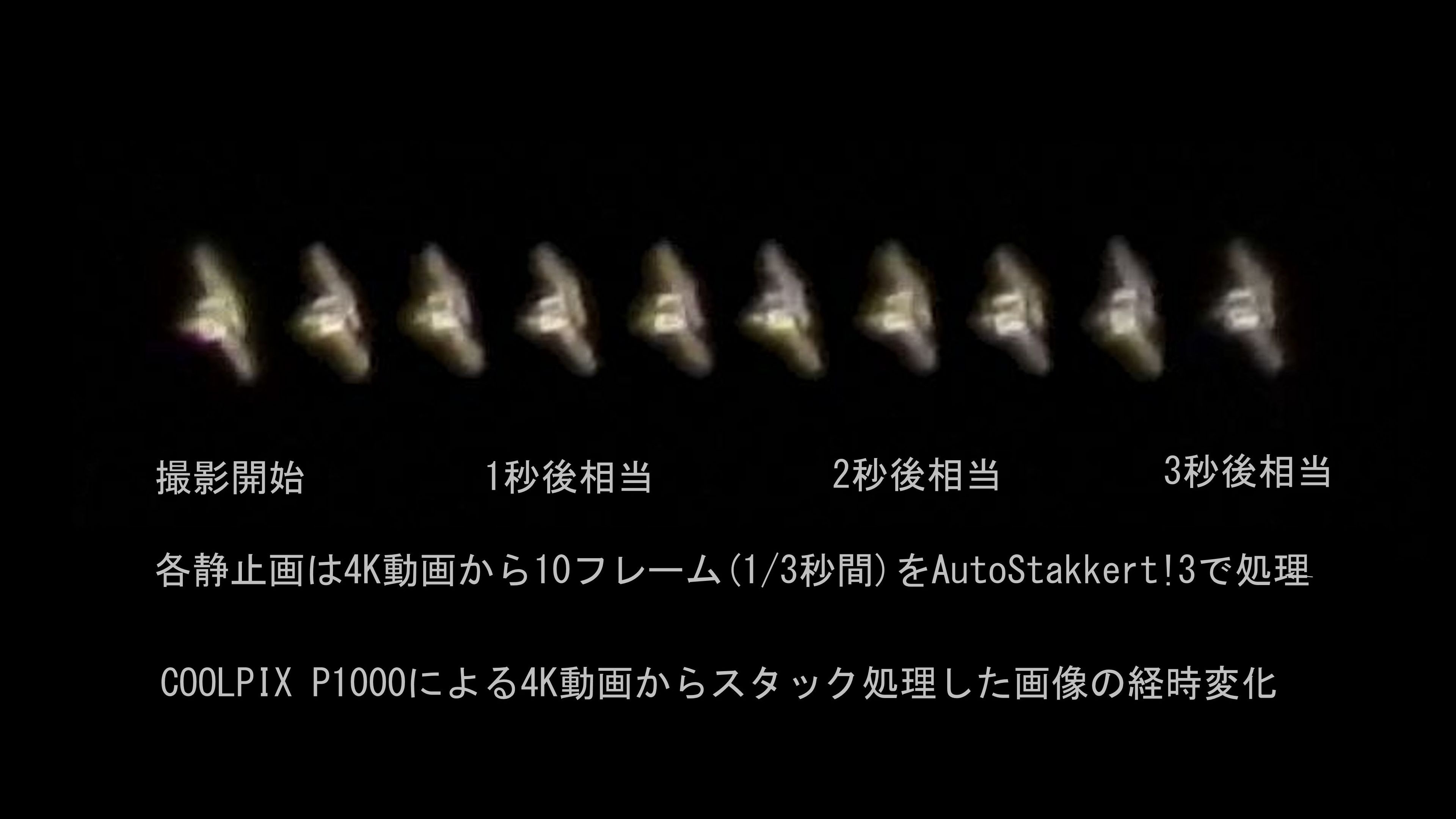 図3 COOLPIX P1000による4K動画からスタック処理した画像の経時変化