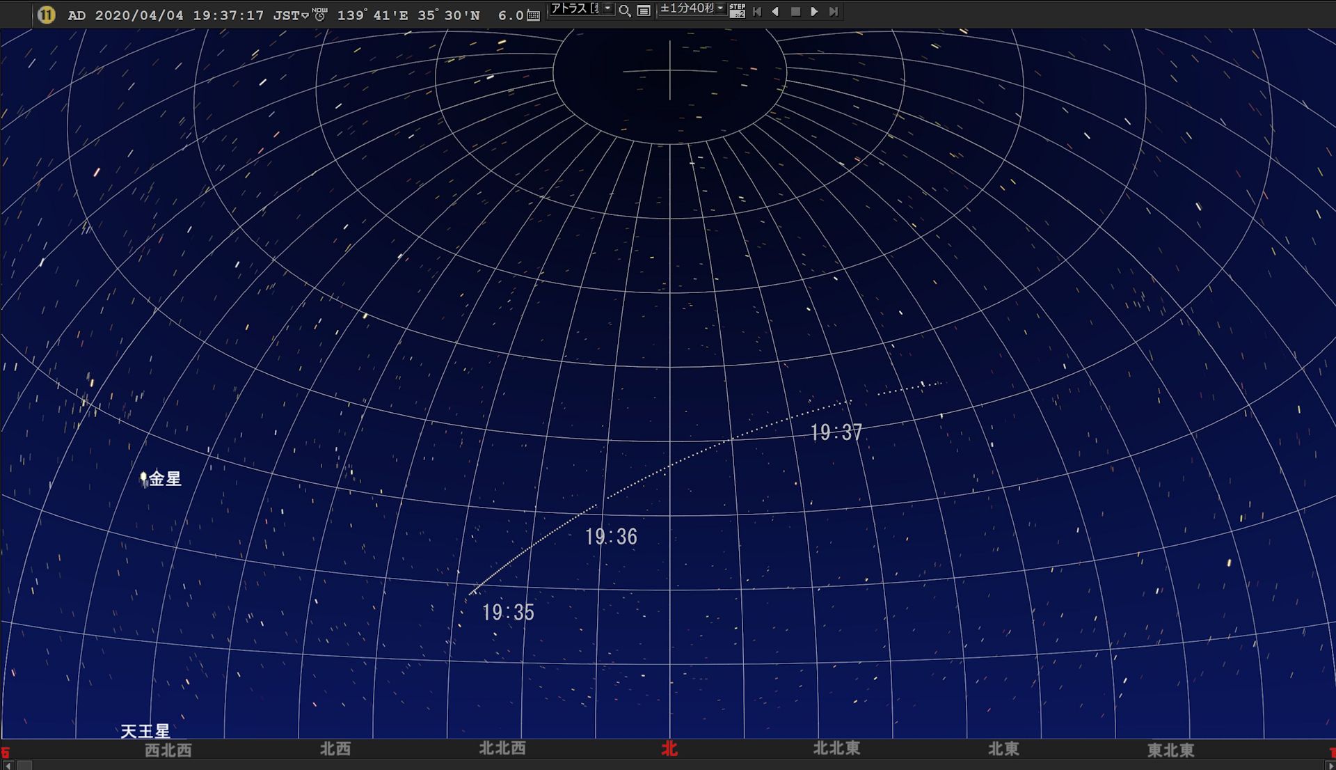 結果を図1に示します。地上軌跡で東北地方の通過は撮影距離として遠く高度は最大で45°でした(ページ最後にマップを添付しています)。過去にこれと似た通過コースの時に拡大撮影をしていますが(例えばNo.040No.336No.397No.543など)、それらと比べると良い画像のように思いました。もっと天頂付近通過の時の撮影が楽しみになりました。