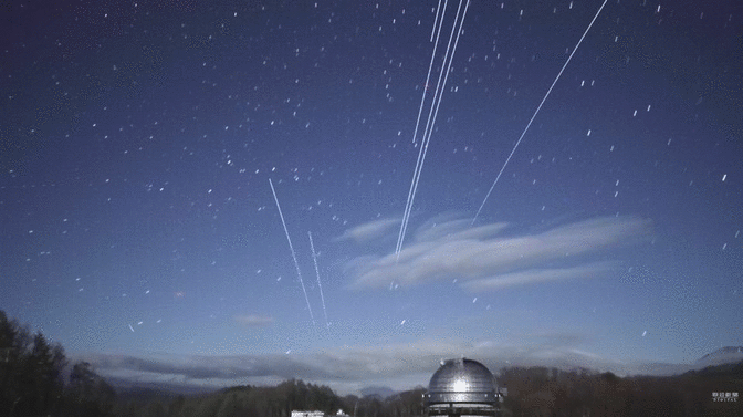 図3 スターリンク衛星群の20分間の追跡 2分の映像を静止画にしてこれらを繋げてGIF化