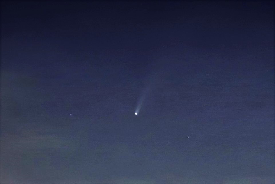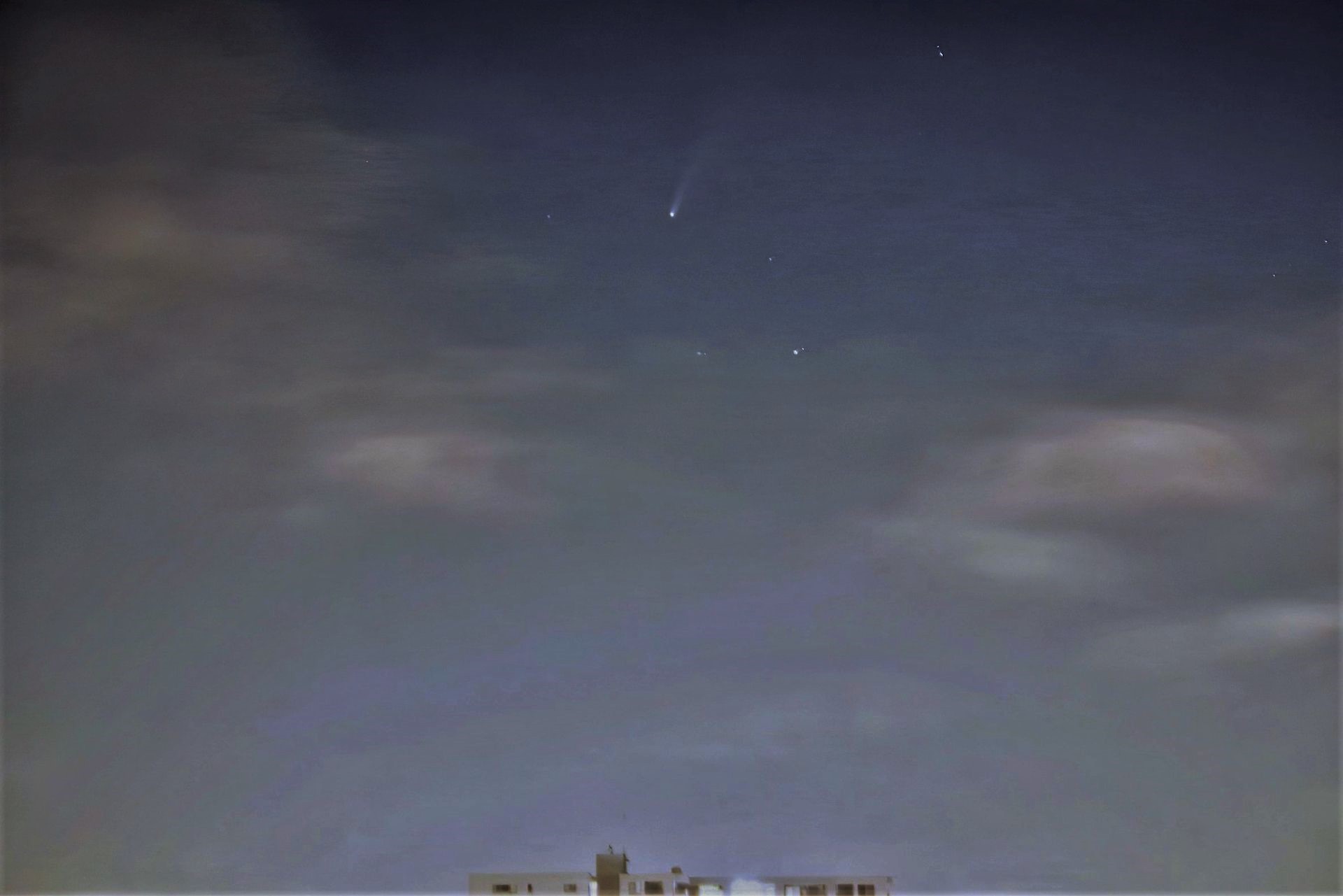横浜の明るい空ですが、彗星の尾もわずかに写っているので貴重な一日間の晴れの成果とします。合成後、ホワイトバランス等調整して、画像もリサイズしています。