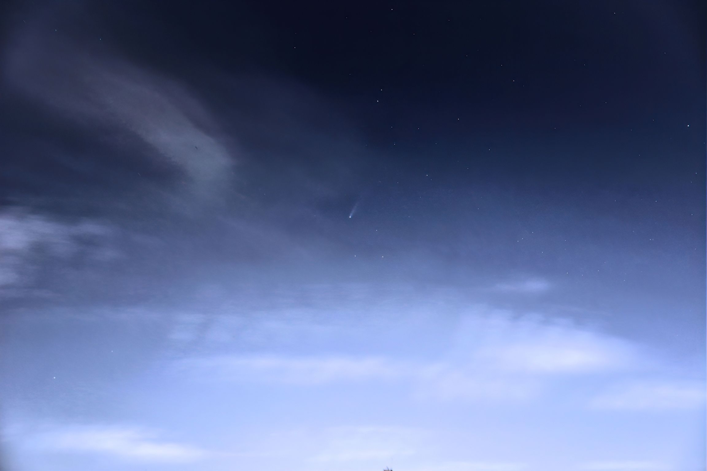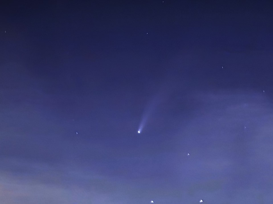 写真1 ネオワイズ彗星C/2020_F3 2020/07/19 20:23 PENTAX K-70 18-135mm ISO-400 68mm (102mm) f/4.5 8秒 10枚RegiStax5で処理 コントラスト・明度等画像処理