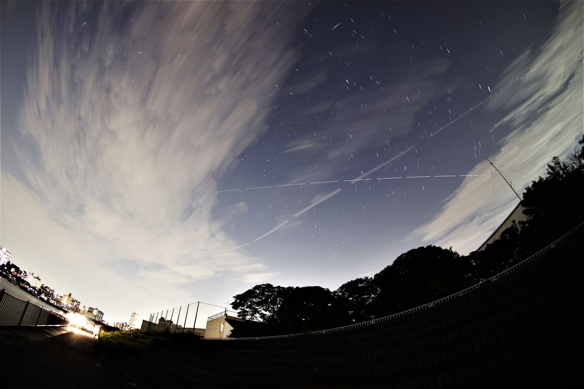 ISS光跡 2020/08/03 19:45~19:49 EOS M6 7artisans 7.5mm f2.8 魚眼レンズ Canon EOS-M用 ISO-200 10秒 2秒間隔繰り返し