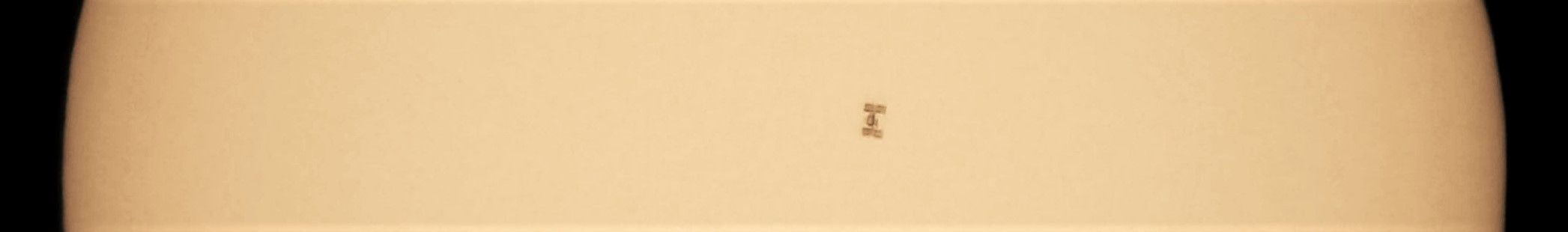 No.744およびNo.745と同じデータなのですが、通過する様子を横にしてISSが少し大きく見えるようにしました。1/1倍速、1/2倍速、1/3倍速の連続動画としています。元々はNDフィルターをつけていますので本当の色を表現しているわけでもありませんので、ここは太陽らしく黄色っぽくしてしまいました。ISSは左から右へと通過します。2020/08/30 09:40:27~09:40:28(0.8秒間で通過)。表紙の一枚は1フレームを選んでいます。最後に添付しておきます。