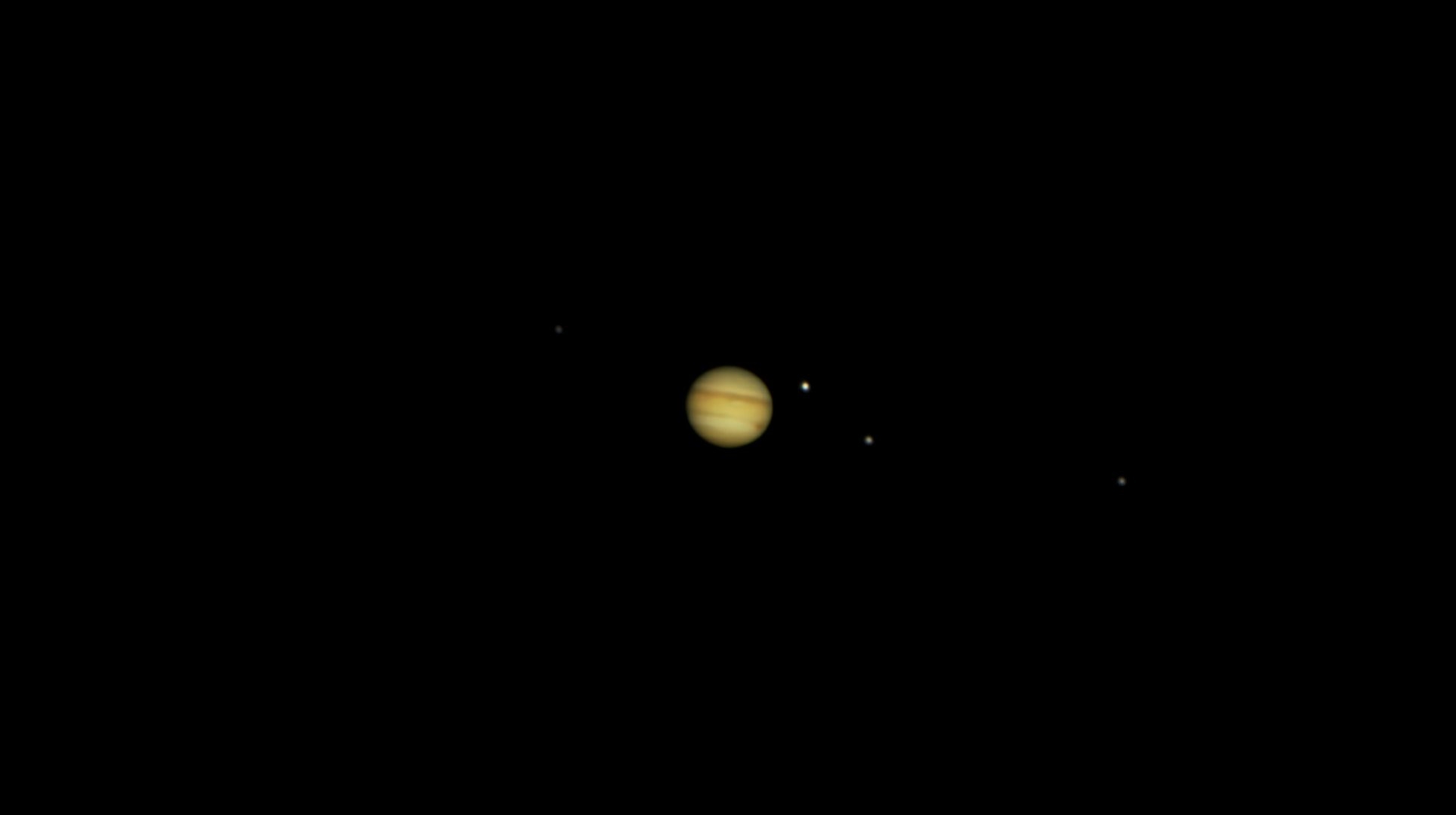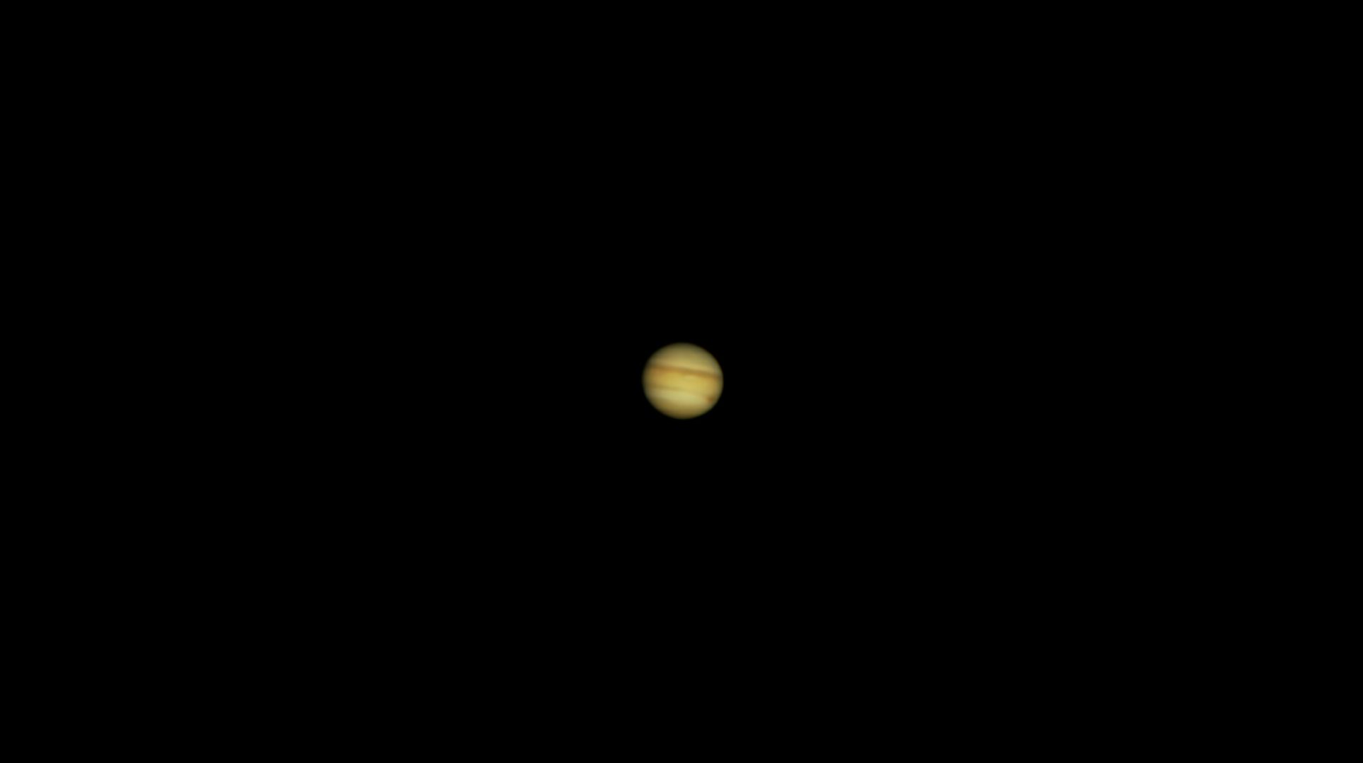 木星に縞模様が薄っすらと、かつ右隣にガニメデ、イオが見えています。両方が映るように条件を決めたため木星本体にとっては明る過ぎます。木星の縞模様を目立つように原動画から編集してみます。