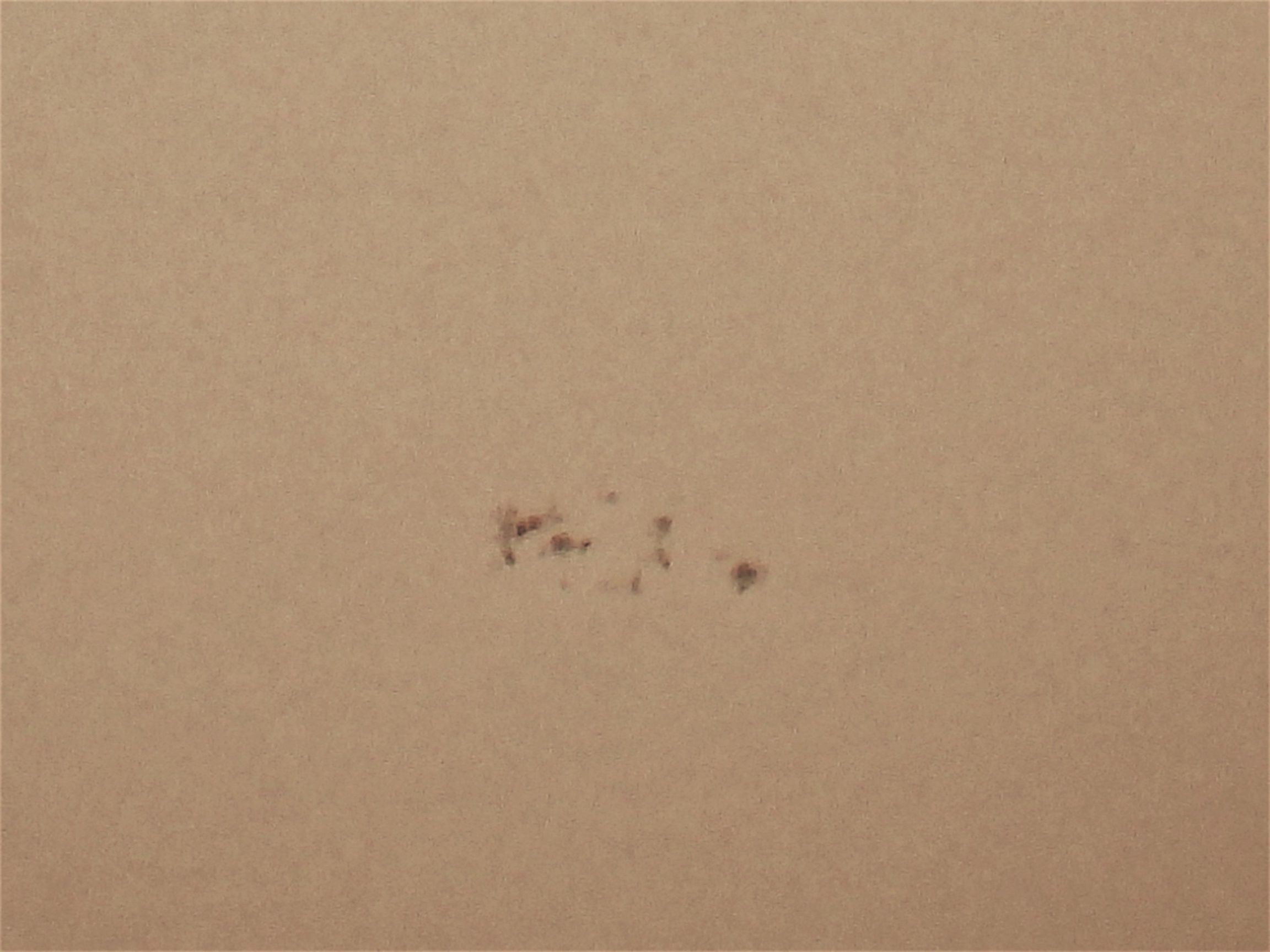 No.769で示した黒点が自転により太陽の裏側に消えたと思いましたら、同時に突然南側の中央にまた黒点が現れました。SOHO SDOで確認できます。SOHO Movie Theaterでhmiigrを選択して2020/10/24~10/27と検索すれば動画でその様子が見られます。