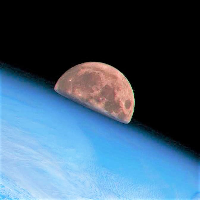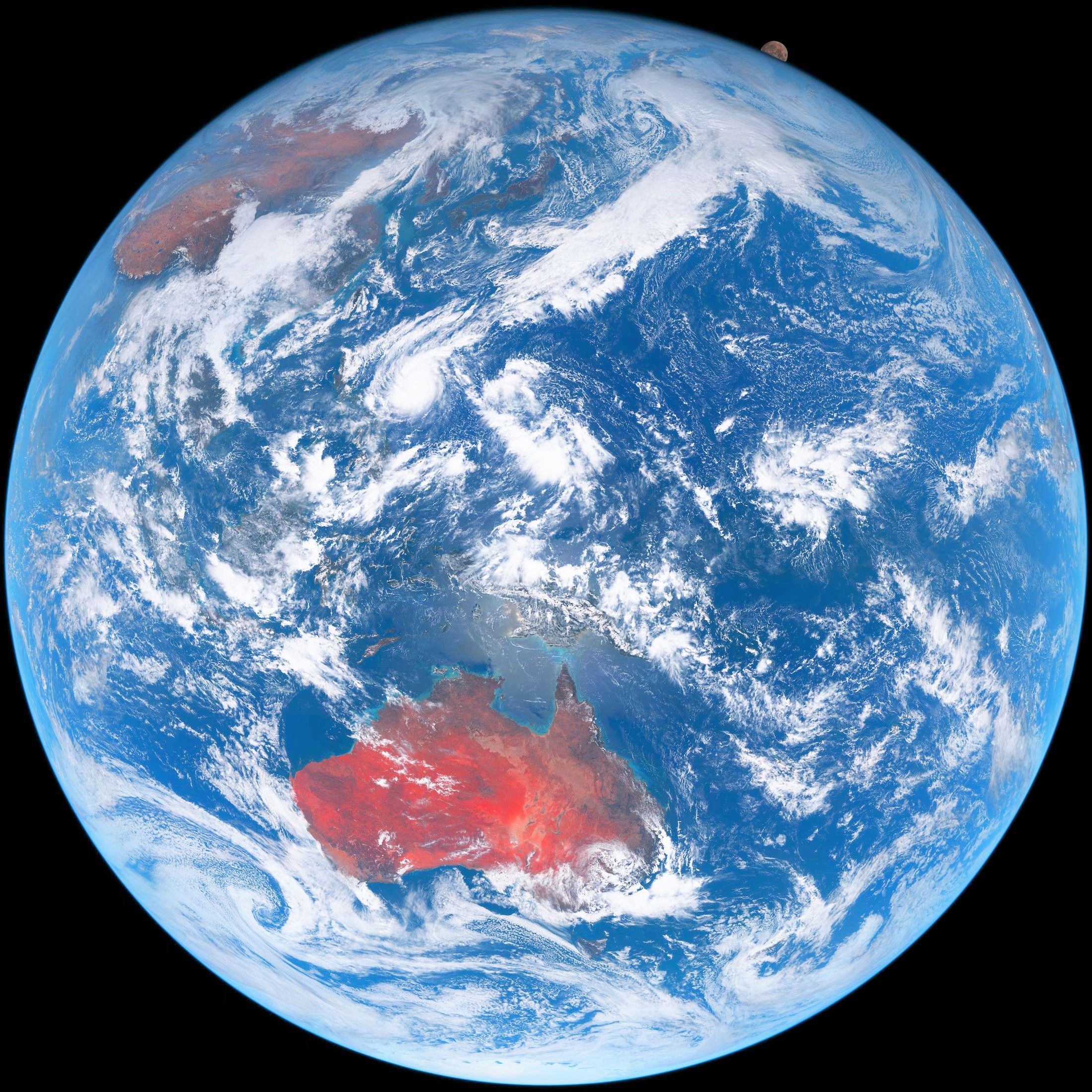ひまわり8号のブルームーン 2020/10/31 11:20 (NICT)地球右上から月の出