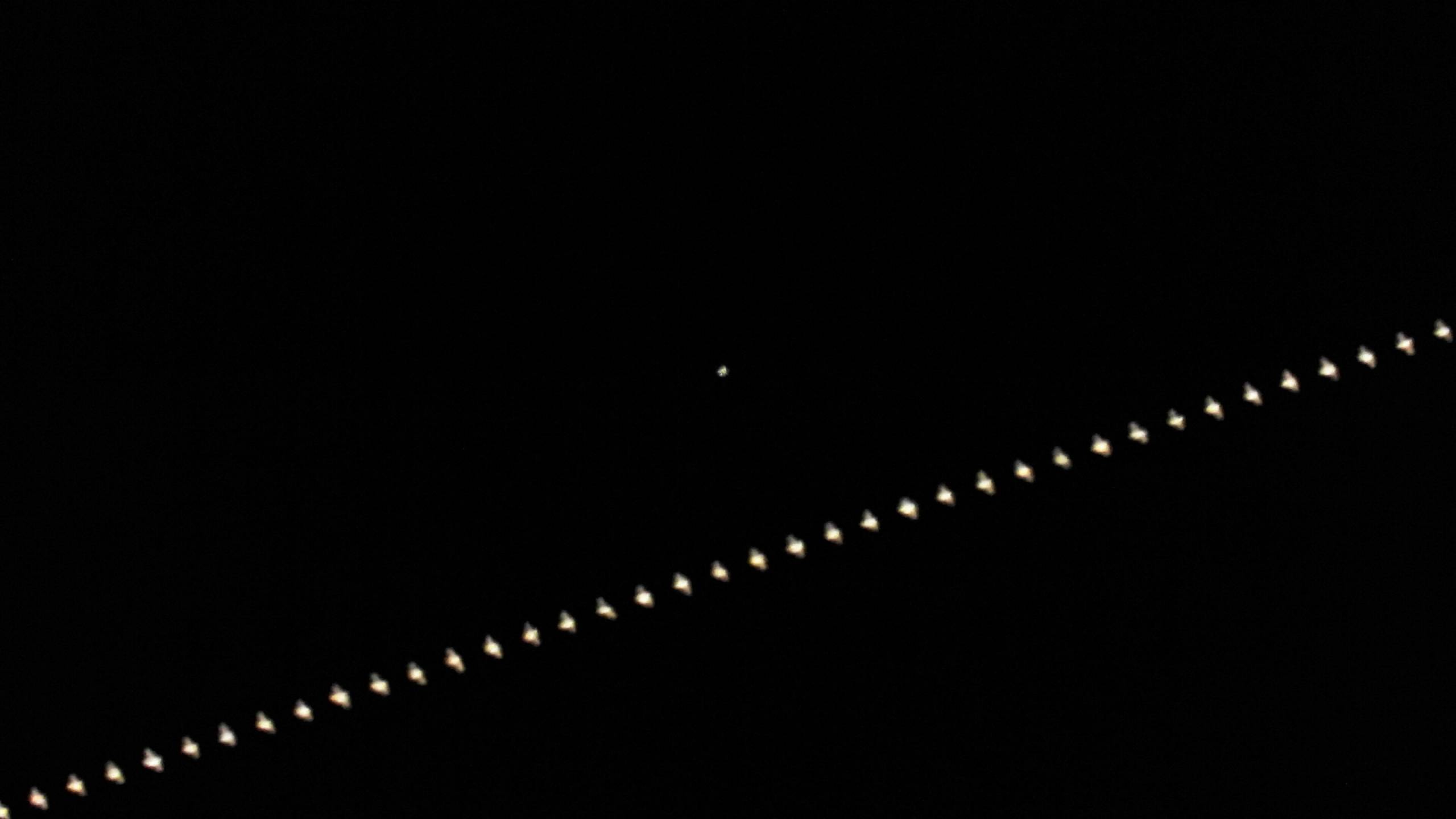 木星、火星、ベガへの接近通過と続き、一か月も経たないうちにチャンスに恵まれました。特に遠出することもなくいつもの定点地での撮影です。それも今回はかなり接近して1km範囲内で3,000mmの撮影に於いて北極星とクロス(重なる)する場所があったのですが、夜間テニス場の大きな照明塔群の真っただ中になってしまい断念しました。