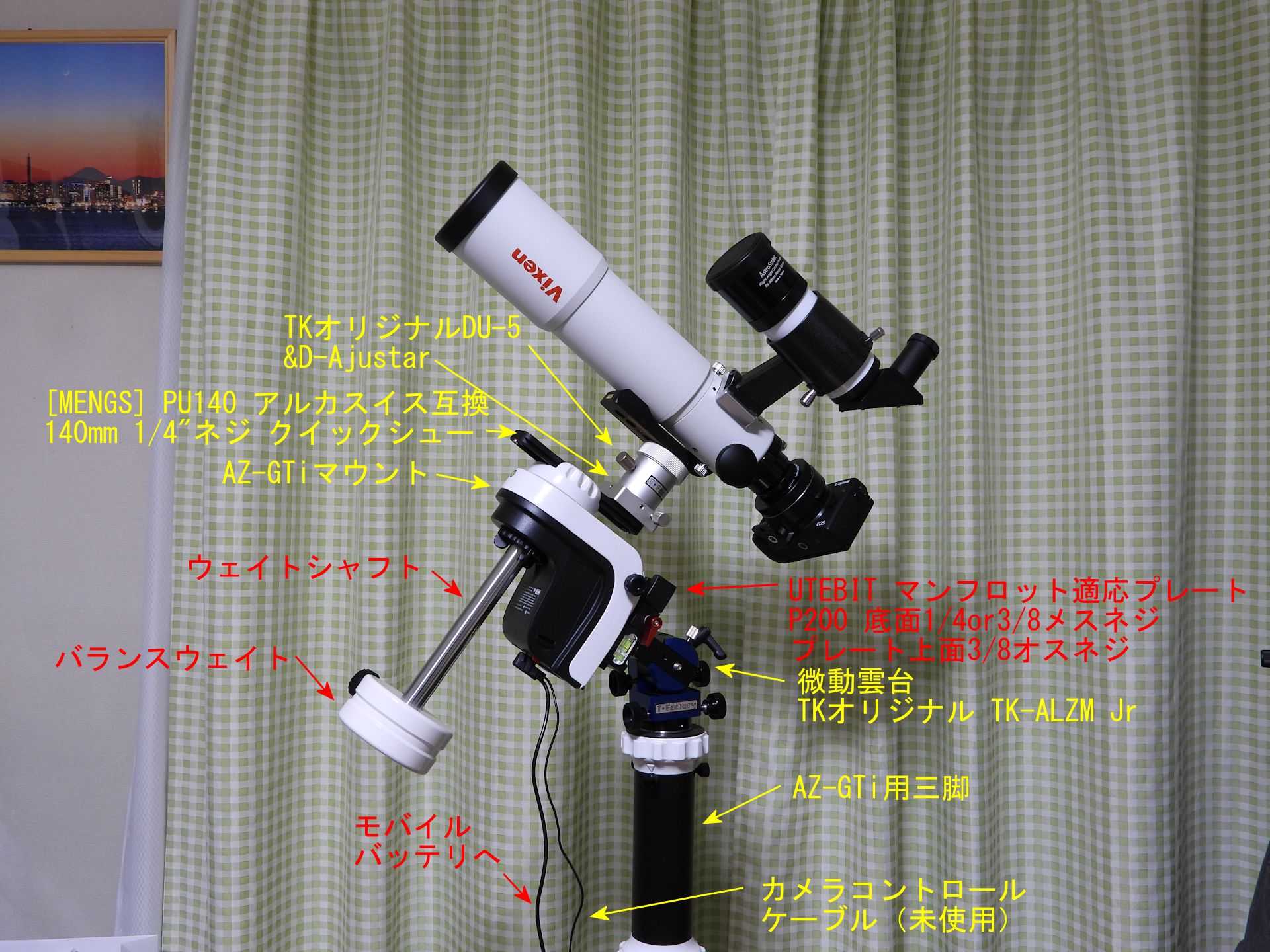 図1 AZ-GTiの赤道儀モード化 光学部品はA62SSの望遠鏡