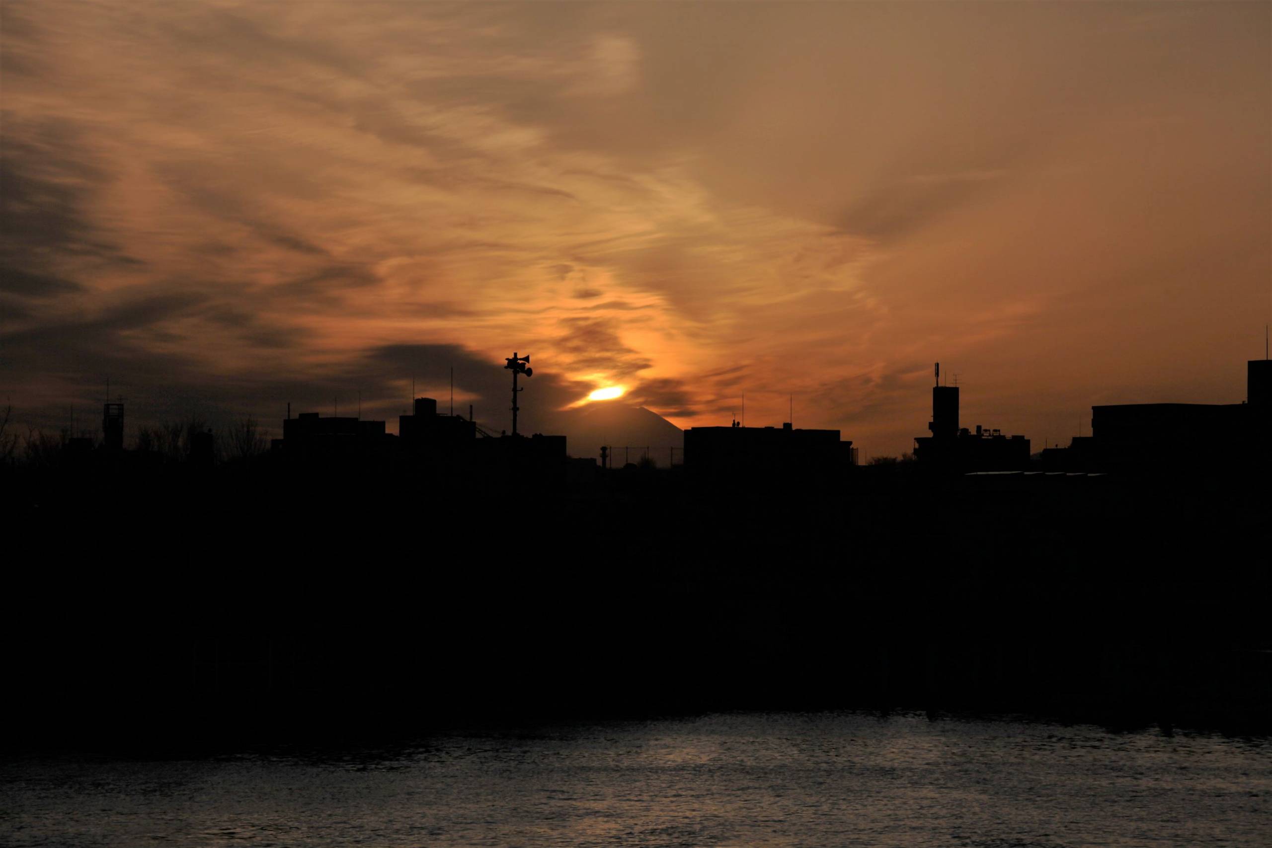 晴れて午前中の風の強さも消えつつあり期待したのですが、太陽が富士山の上になる頃に雲が目立ち始めてしまいました。撮影結果を以下に整理します。6,7名の方が撮影されていました。マンション等が建つに連れて富士山が隠されつつ、それでもまだ頂上が見えるだけでも撮影機会をもたらしてくれます。