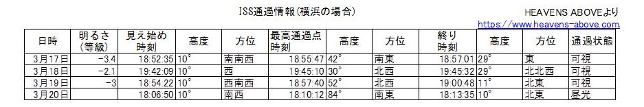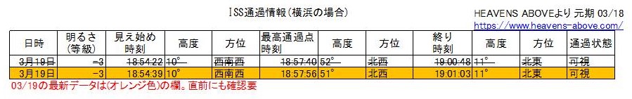 (追加:03/19通過の最新確認) さらに元期更新により通過時刻等が変化してしています。地方によってLunar Transitも楽しめそう。いいなぁ。JAXA、 Heavens Above、 ISS TRANSIT FINDER等で確認すると確実です。横浜ケースの作図等は文末に添付。