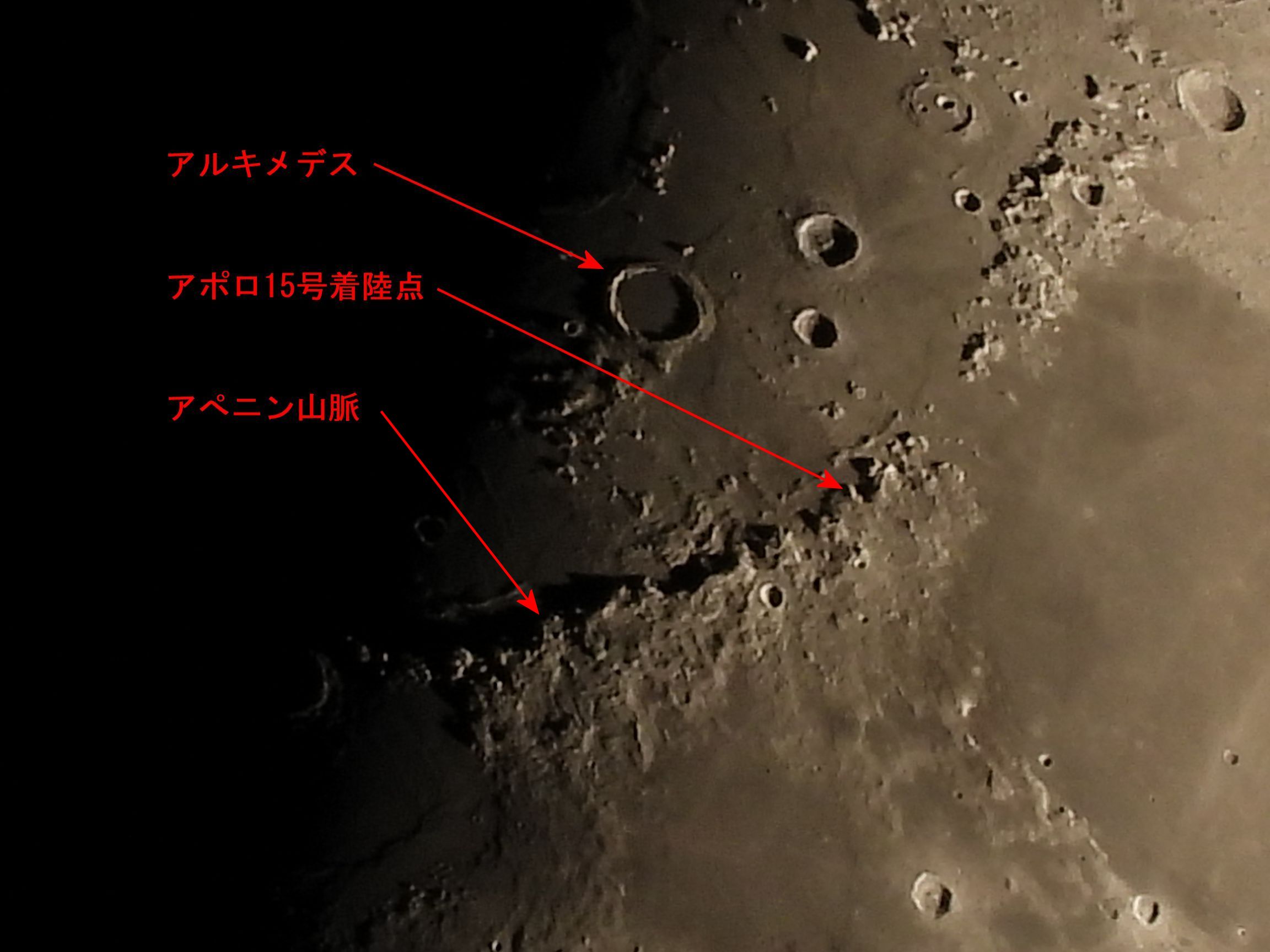 (アルキメデス、アペニン山脈、アポロ15号着陸点)