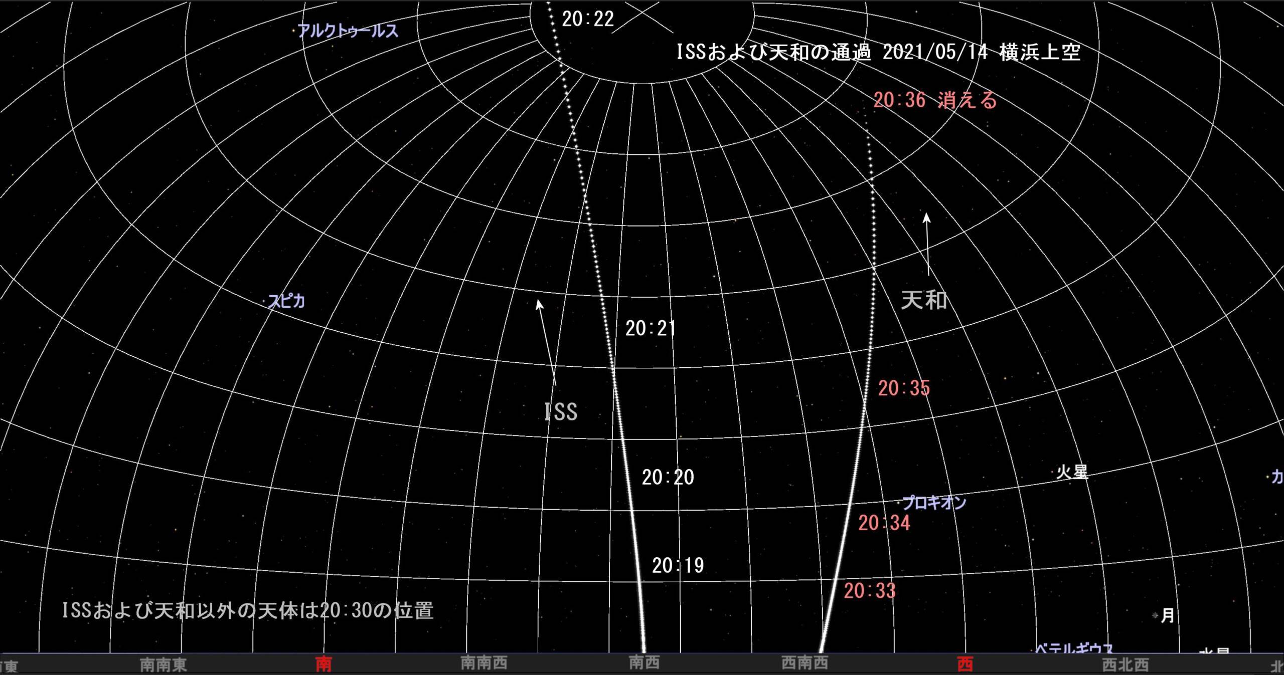 (2021/05/14のISSと天和の通過)