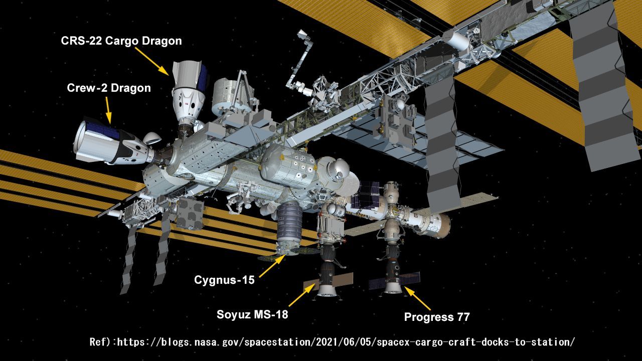 (追加:今週実施予定の船外活動によるソーラー取付場所の写真を文末に追記しました。記:2021/06/16)
