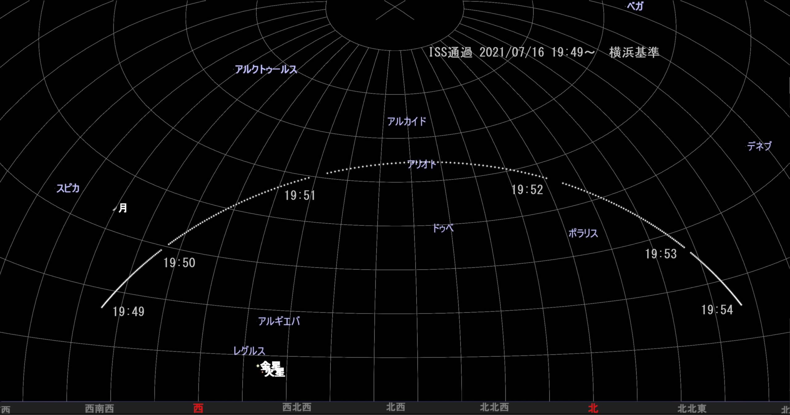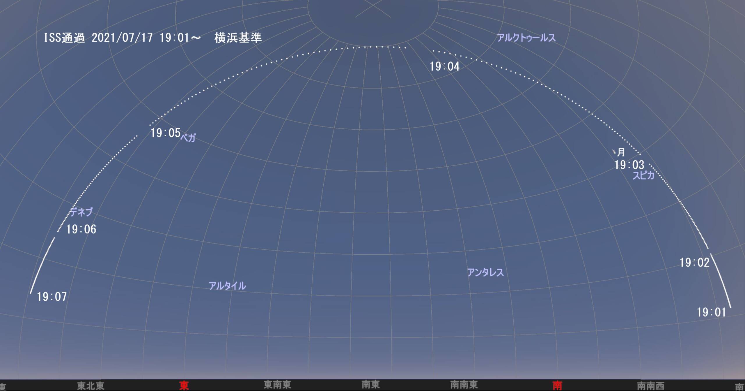 2021/07/17は横浜では日没18:56、通過は10分後で明るすぎでダメかもですが晴れれば挑戦です。この日もデネブ接近通過で3,000mm×1.4=4,200mmと上記過去のNo.886と同様に撮れるのですが、デネブ自体が見えないと思われるのでダメかも。