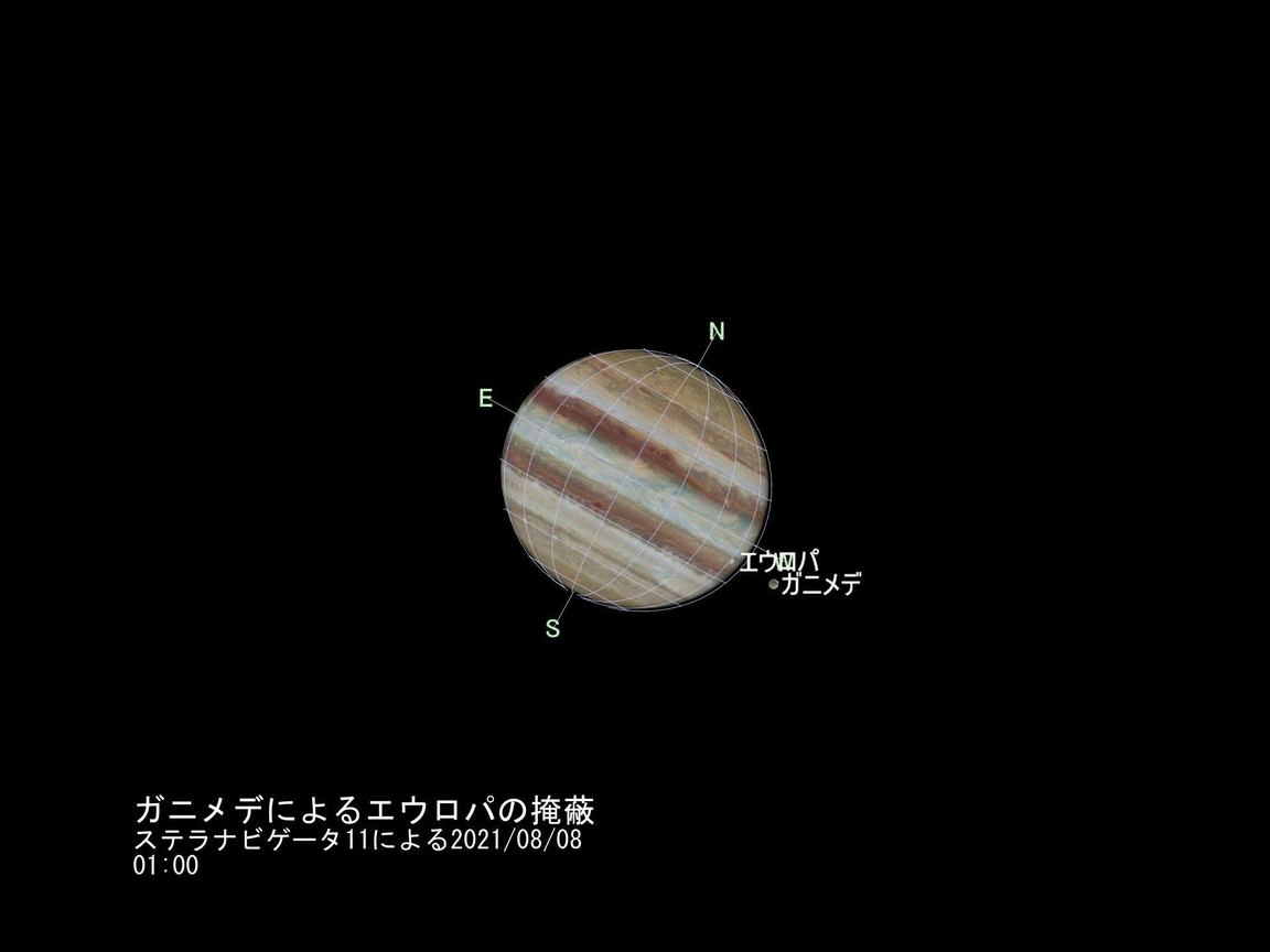 2021/08/16 01:45 エウロパーガニメデ 木星本体上で掩蔽?