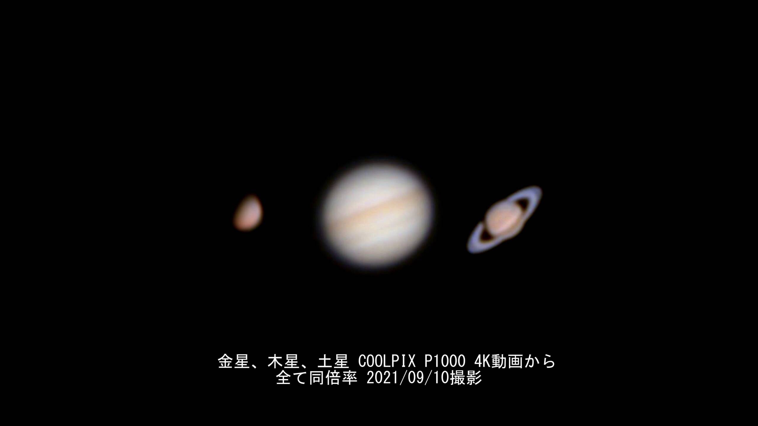 三惑星をまとめて一枚に。全て同倍率です。木星はNo.917の時よりもぼーっとしていてクリアではありませんがそれなりに。金星は小さいな、木星はまだでかい。