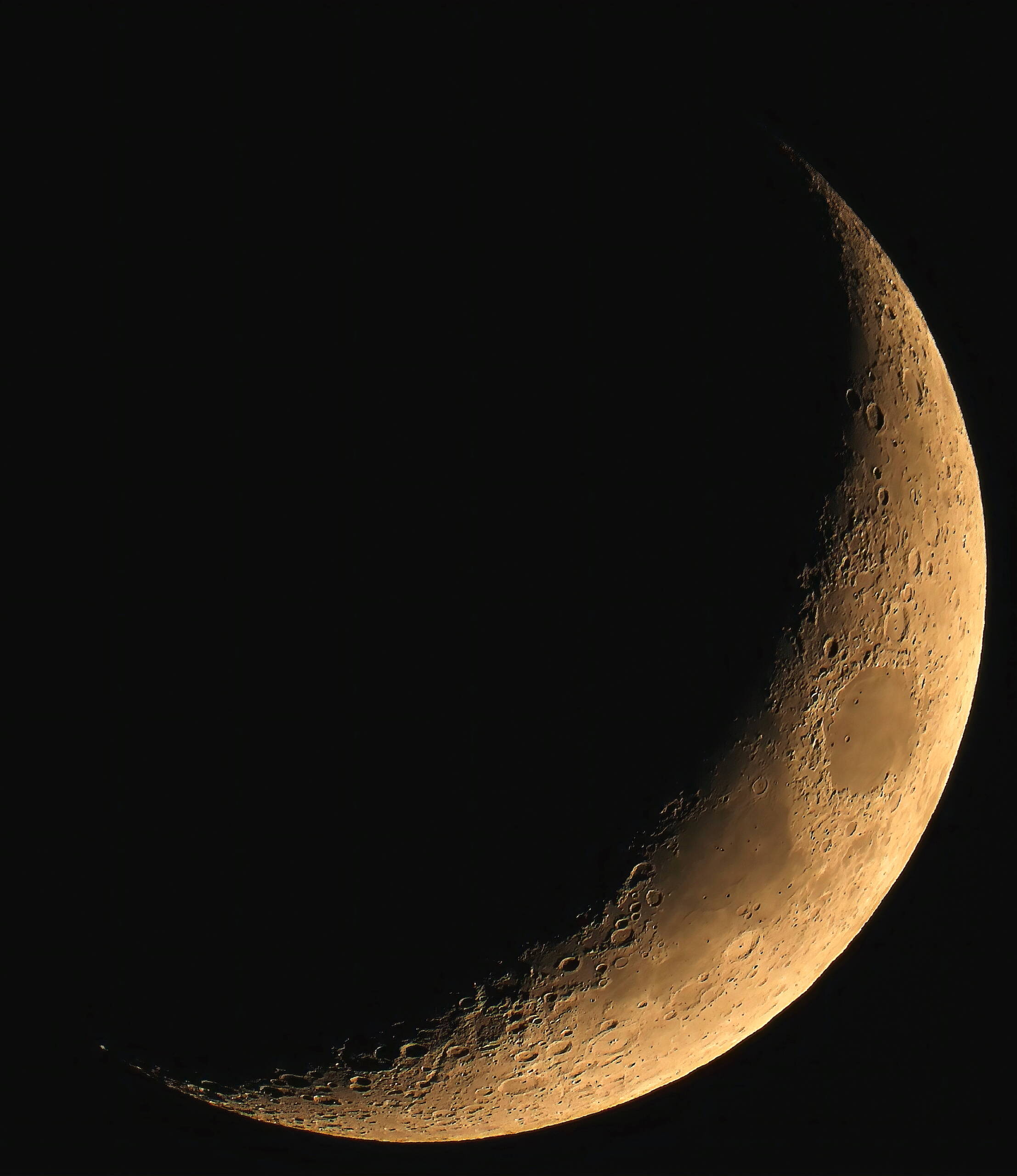 昨日は月、金星、アンタレスと接近していました。その中の月齢3.9の全体画像をカメラを90°回転し3,000mmにして捉えました。クッキリと撮れていると思います。 COOLPIX P1000 2021/10/10 18:24(ID:N1739)ISO-100 f/8 539mm(3,000mm) 1/30秒。