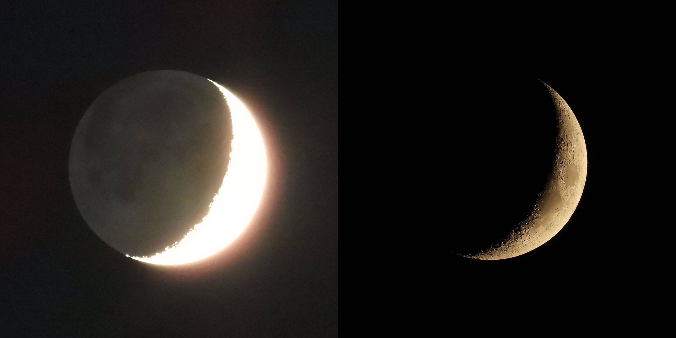 この状態で月齢3.9を。地球照としてはまだクッキリとはしませんでした。ほぼ同時刻の写真を並べておきました。その他、別位置からの月の入り直前の超望遠写真とかありましたけれどここまでとします。楽しかった。