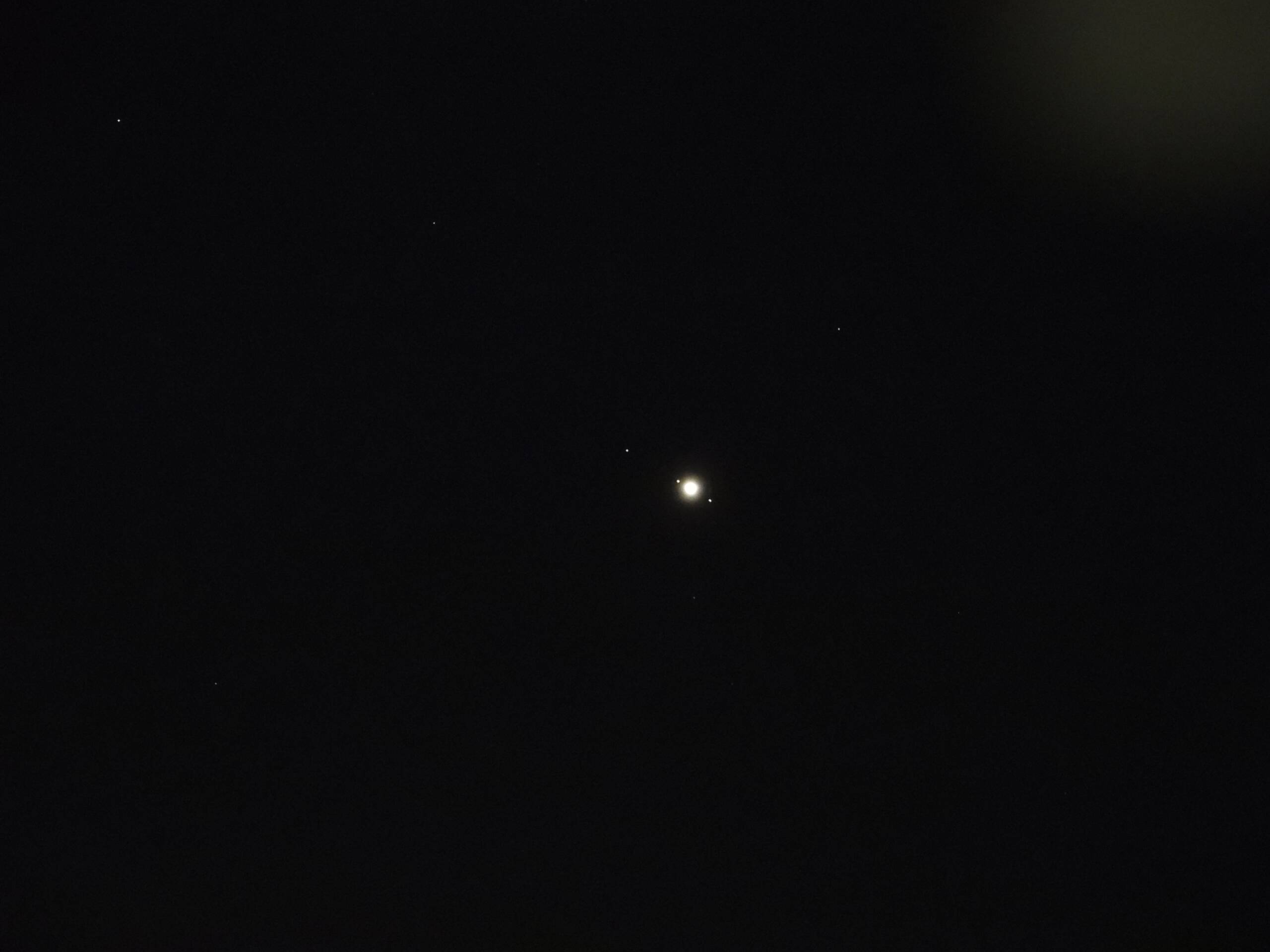 2021/10/15の空は月と木星が近づいて見えるので窓から。雲の流れがひどいが、両方見える時を狙って。