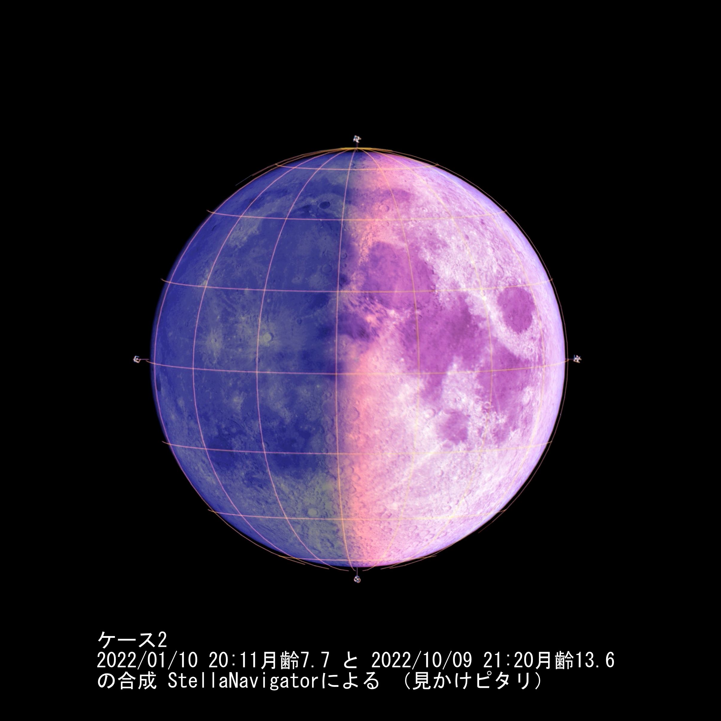 ケース2 半月2022/01/10 20:11 月齢7.7、満月2022/10/09 21:20 月齢13.6
