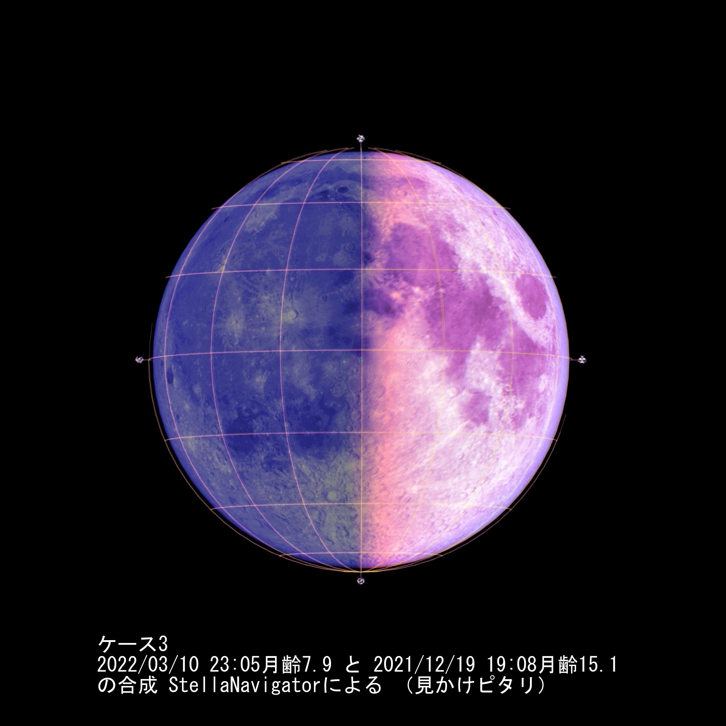 ケース3 半月2022/03/10 23:05 月齢7.9、満月2021/12/19 19:08 月齢15.1