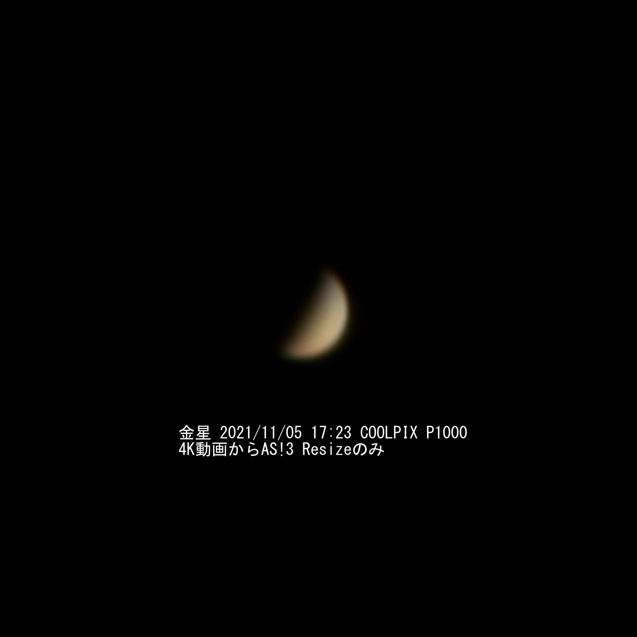 4K動画のまま上記64秒間のファイルをPIPP前処理、AutoStakkert!3で処理。ここまでの段階で既に金星らしい画像なのでそのままに。以下にその画像を示します、サイズ以外は撮ったままです。だいぶ欠けてきて金星らしく見えます。