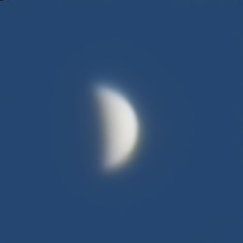 思い出せば、当日は雲を利用していたのですが、動きが早く、また途中で雲が無くなってしまい、ほとんど勘。夜でしたら難なくできるのですが昼間は明るく捕捉が難しい。結果として低倍率で撮った写真には月と金星が写っていたのですが、その場では周りが明るすぎてモニターの中では確認できませんでした。そうなると焦り出し、あちこち向きを調整し、余計にずらしてしまったようです。気軽、お手軽撮影の欠点がもろに。今思えば、モニターに太陽光の反射防止、高度、方位を正確に5分単位で整理しておけば少しは良かったと。