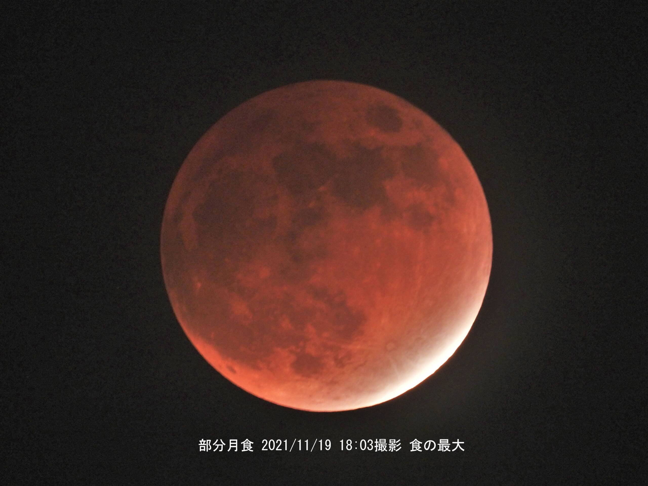 部分月食 2021/11/19 20:00(本影終了13分後) COOLPIX P1000 ISO-100 f/6.3 359mm’2,000mm) 1/160秒