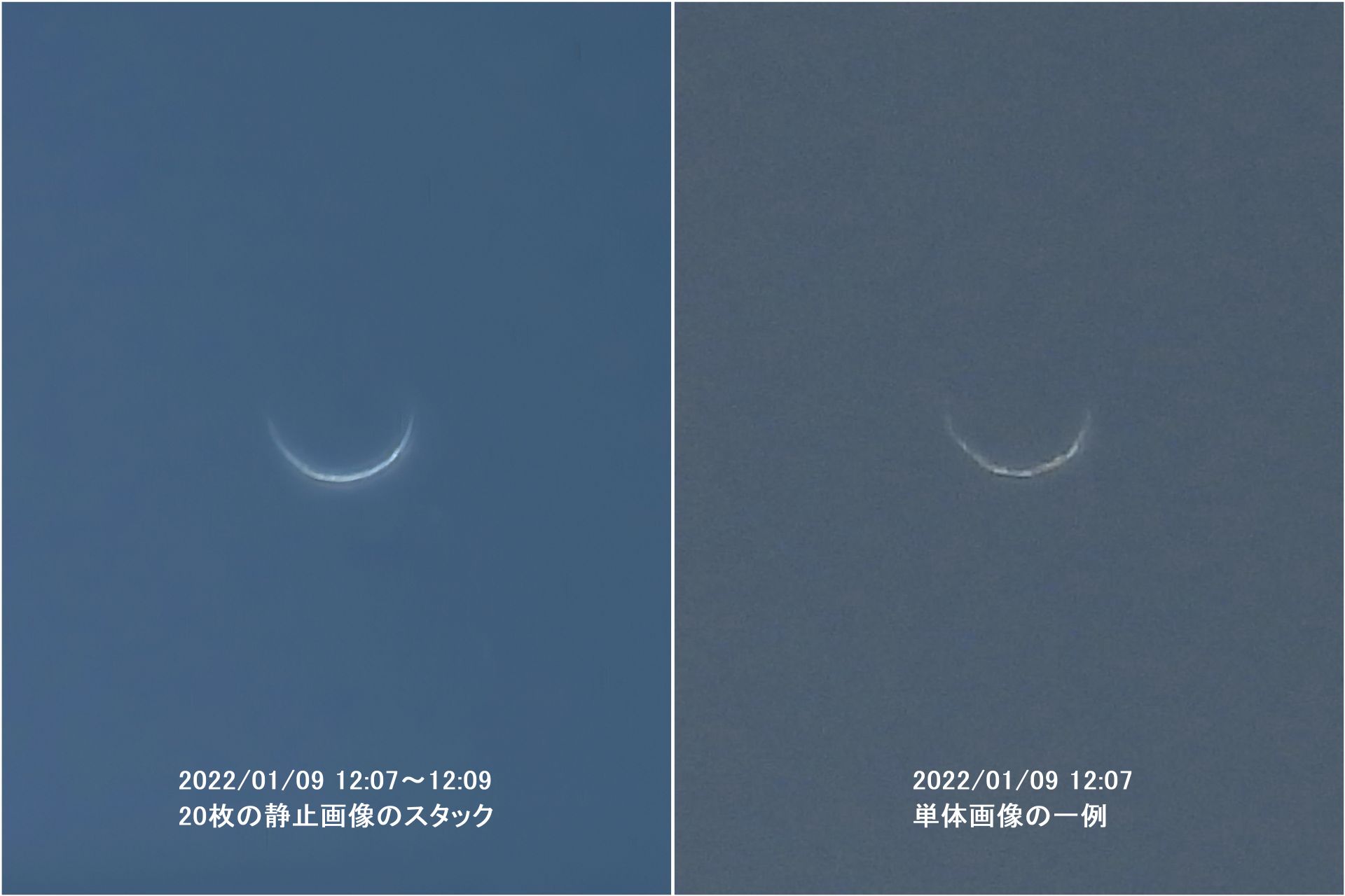 以下に撮影結果を示します。最初に内合11時間後1月9日の画像を示し、次に内合7時間前1月8日の画像を示します。